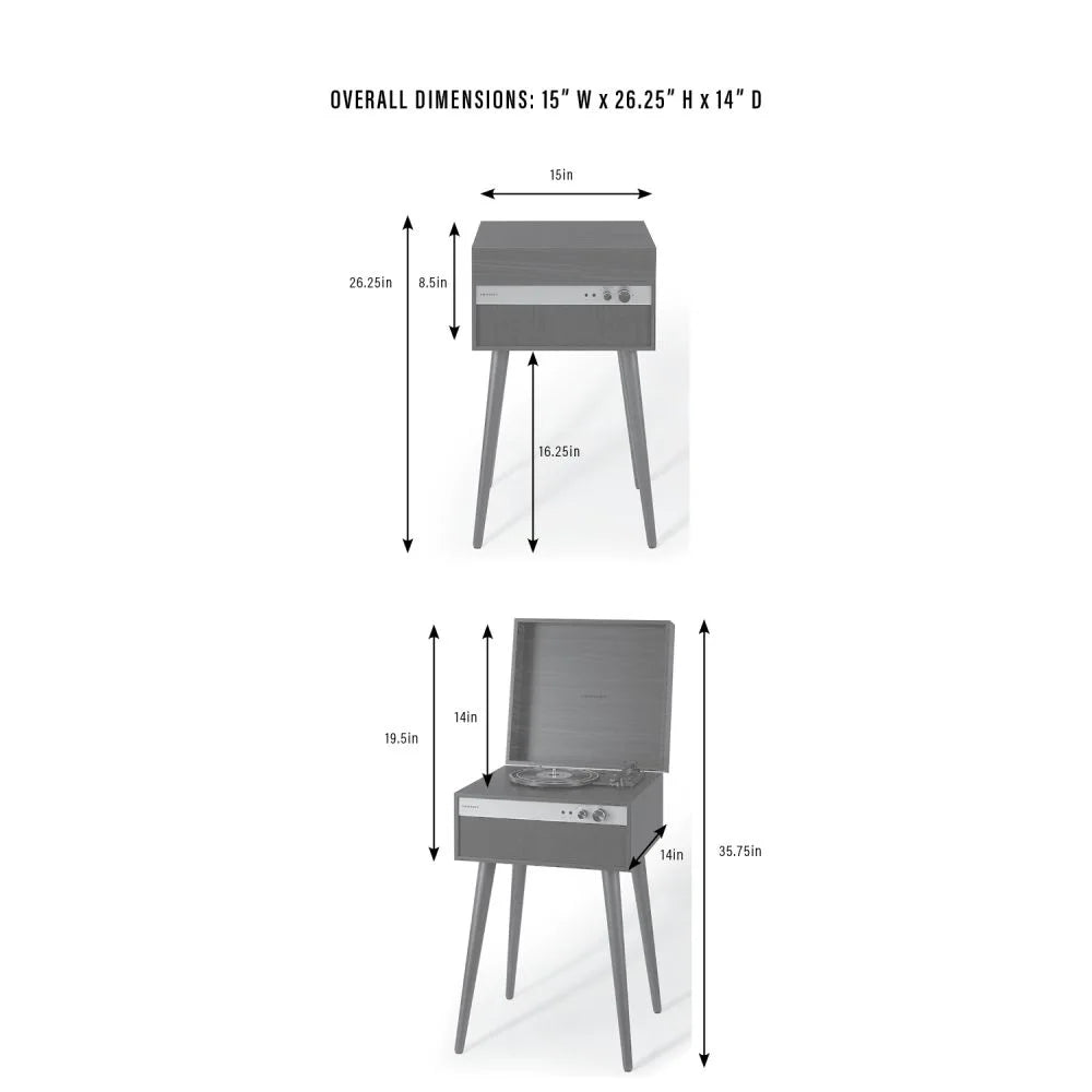 Designet er inspireret af det mid-century retrolook med en smuk træfinish, der gør pladespilleren til et dekorativt element i stuen, kontoret eller ungdomsværelset. De aftagelige ben gør den nem at placere som fritstående møbel eller kompakt bordmodel efter behov.