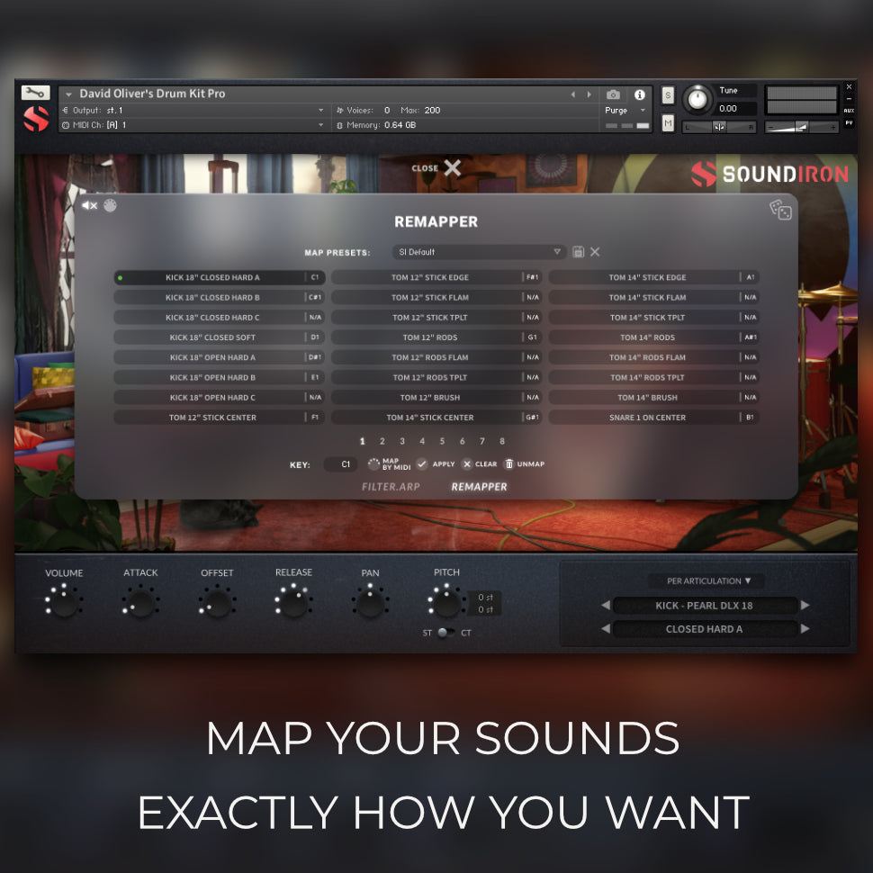 Kontakt-rajapinta sisältää joukon automaatioystävällisiä äänenmuokkausohjaimia, jotka antavat sinulle täydellisen luovan joustavuuden. Sinulla on hallinta swellin, hyökkäyksen, vapautuksen, offsetin, vibraton, suodattimen, sävelkorkeuden (karkea & hieno), artikulaation vaihtamisen, ristiinliukujen ja kerrostamisen sekä niin paljon enemmän.