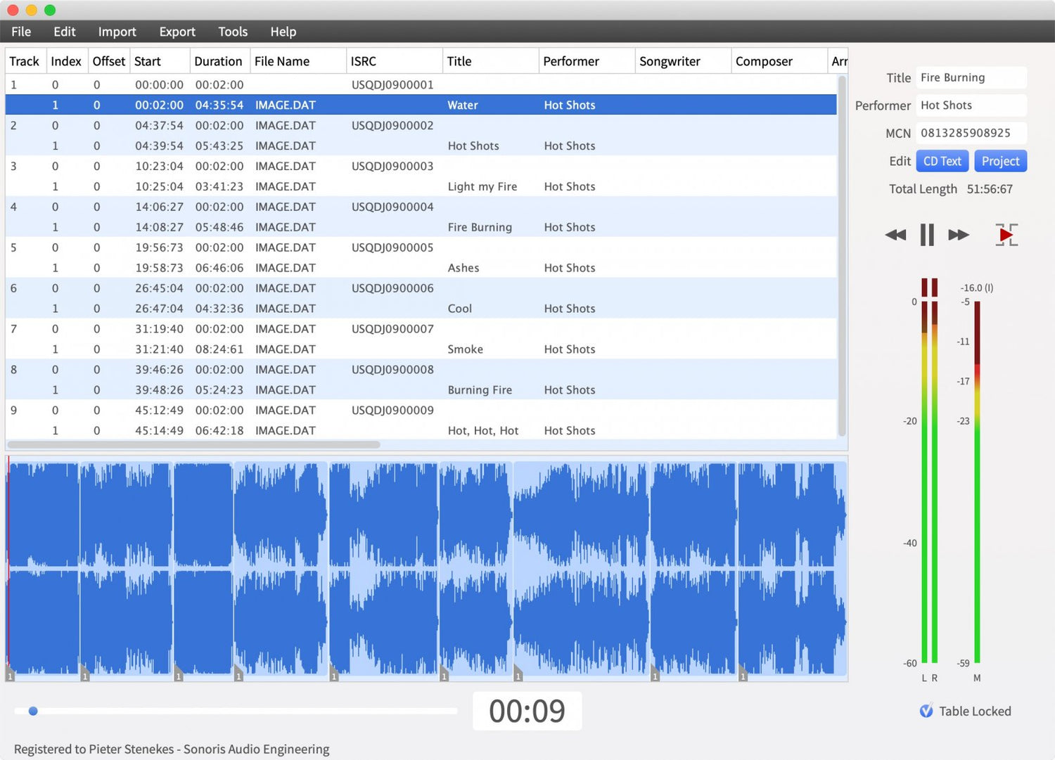 The Sonoris DDP Creator is a standalone cross-platform CD authoring application compatible with virtually any DAW software on the market. The DDP Creator lets you assemble professional RedBook compatible audio CD's and supports the import and export of DDP 2.00 images and Cue Sheet (cue) files. It also enables you to burn and rip audio CD's and send off images with FTP.
