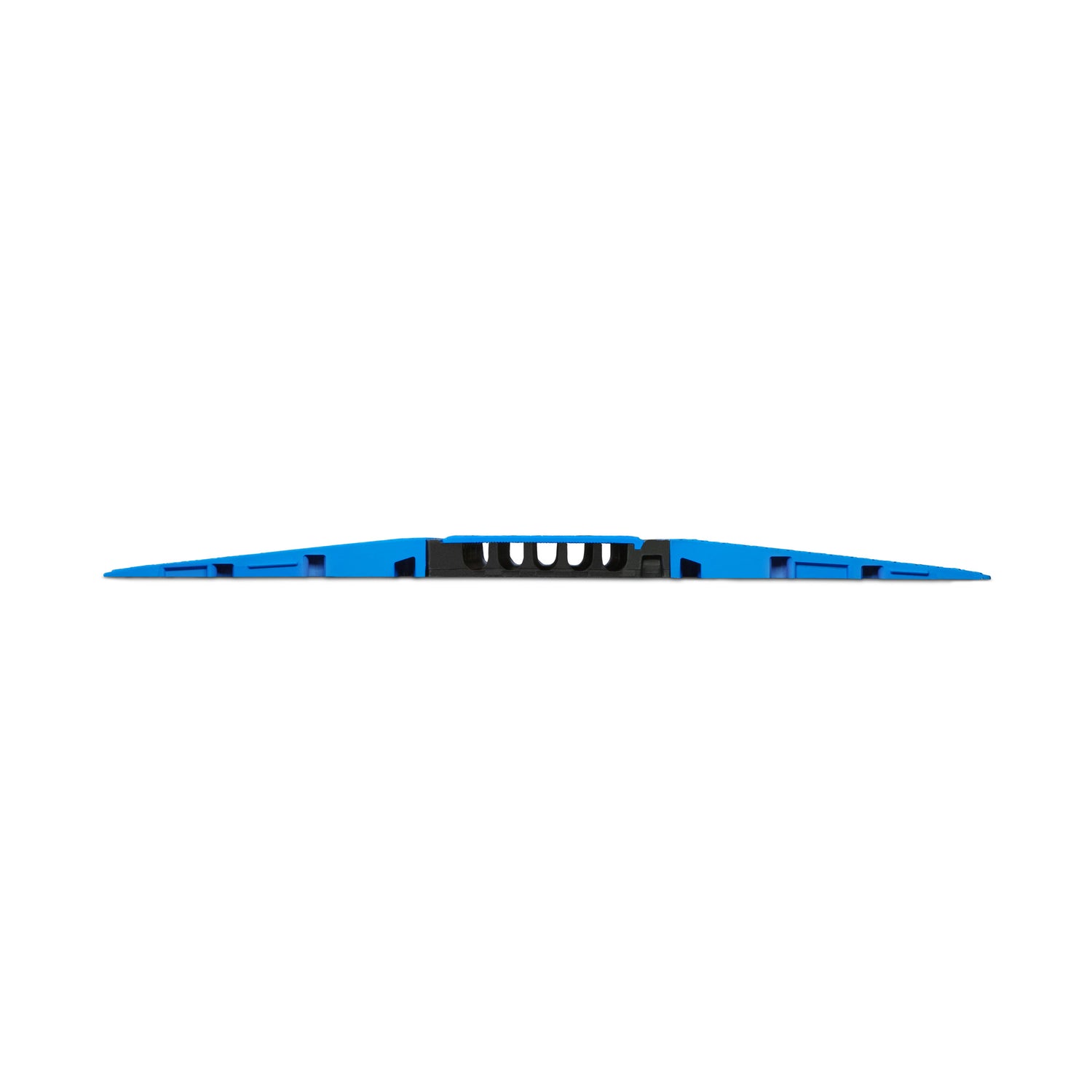 DEFENDER® MIDI 5 2D-sæt med blåt låg 'Barrierefri adgang' er blevet et emne, der har vakt stigende bekymring hos både offentlige myndigheder og eventarrangører i de seneste år. Konventionelle kabelbeskyttersystemer betyder ofte, at man må gå på kompromis mellem tilgængelighed og fremkommelighed. Men dette er ikke tilfældet med den nye Blue DEFENDER® 2D M: Hver midtersektion kan udstyres med to ramper med 6° hældning, som uden problemer kan køres helt hen over. Den flade hældning gør det nemt for kørestolsbrugere at trille over beskytterne uden besvær. De er desuden så stabile, at selv gaffeltrucks og lastbiler kan køre hen over dem. Nem adgang og sikkerhed til områder, hvor fem kanaler typisk ikke er nok, f.eks. nær strømgeneratorer eller FOH-områder, er dermed også garanteret. Lyd-, lys- og strømkabler kan lægges individuelt, ubesværet og sikkert. Midtersektionerne er designet symmetrisk hele vejen rundt for at lette monteringen, så du aldrig igen behøver at lede efter det rigtige tilkoblingsstykke. Derfor er der ikke behov for detaljerede monteringsdiagrammer. Forbindelserne er designet med tilstrækkelig plads til nem installation.