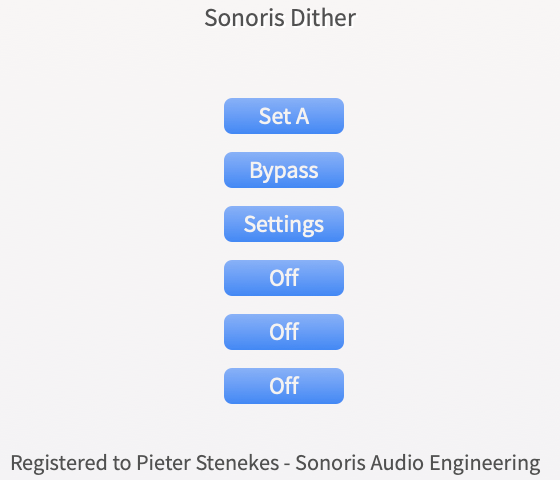 Sonoris Dither is a professional, high quality audio plugin for mastering purposes. With this plugin you can quantize audio to a lower bitdepth with dither and/or noiseshaping. The dithertype is selectable between TPDF and High Pass (HP) TPDF. TPDF is short for Triangular Probability Densitity Function, a form of dither that eliminates non-linear distortion during re-quantization and has no signal modulation artifacts.