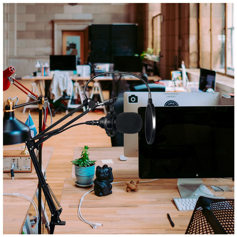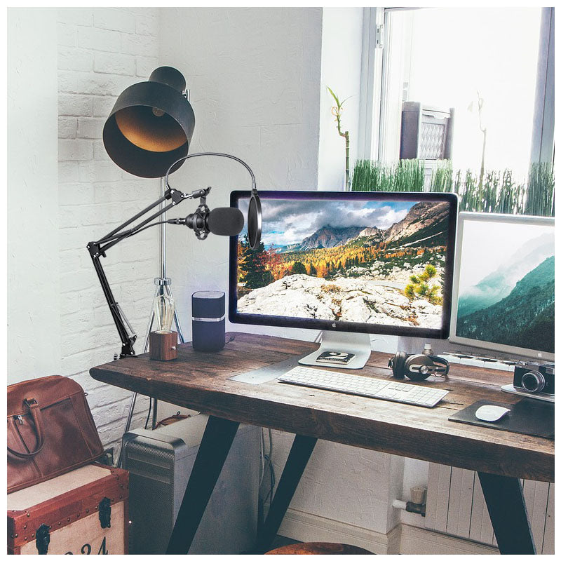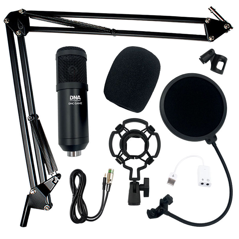 DNA DNC GAME is a desktop microphone set, which includes a condenser microphone with a shock mount, a boom arm which can be screwed to a tabletop, a windscreen for the microphone and a pop filter with flexible mounting bracket to suppress the plosives and an XLRjack cable. The set is ideal for recording studios, radio stations as well as for recording podcasts, voiceover texts and acoustic instruments. The wide frequency range, high sensitivity and unidirectionality of the microphone make the recorded audio very accurate. A boom arm with a wide range of movement allows precise positioning of the microphone in relation to the audio source in all conditions. This is a fully professional, yet relatively inexpensive recording microphone set from the renowned DNA brand, available at the best price prepared by our store.nbspCharacteristicssmalldiaphragm condenser microphone provides excellent voice quality and clarityshock mount suppresses resonant vibrationswindscreen made of technical foam protects the microphone from wind and minimizes ambient noiseeasy mounting on all standard microphone standspowerful voice pickuppickup pattern minimizes background noise and isolates the main sound sourceset ideal for radio studios, voiceover recording studios and homerecordingperfect for recording singing, speech and acoustic instruments.nbspTechnical specificationMic housing zinc alloy body, steel meshPolar pattern unidirectionalDiaphragm Oslash34 pressure transducerFrequency range 20 Hz ndash 20 kHzSensitivity 45 dB plusmn 1 dBOutput impedance 150Omega plusmn 30 1 kHzLoad impedance ge1000OmegaEquivalent noise level 16 dBaMax. SPL 130 dBCurrent 3 mASignaltonoise ratio 78 dBMicrophone output connector XLRCable XLR 3.5 mm jackCable length 2.5 mVoltage Phantom 48VDimensions 16 x 5 x 5 cmIncluded condenser mic, shock mount, boom arm, foam windscreen for microphone, pop filter, XLR 3.5 mm jack cable, user manual