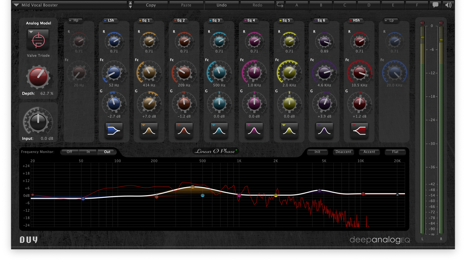 Duy Deep Analog EQ is the first multiband parametric equalizer combining linear phase filtering with analog-modelled technology.