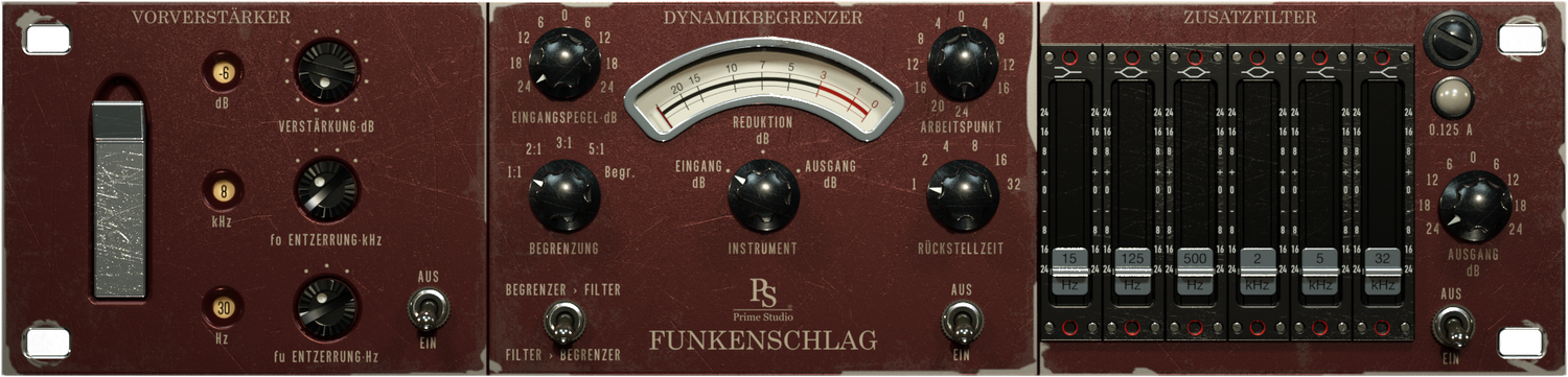 Funkenschlag on mono / stereo kanavapalkki plug-in, jossa on kolme yhdistettävää työkalua, jotka värittävät kappaleidesi ääntä.