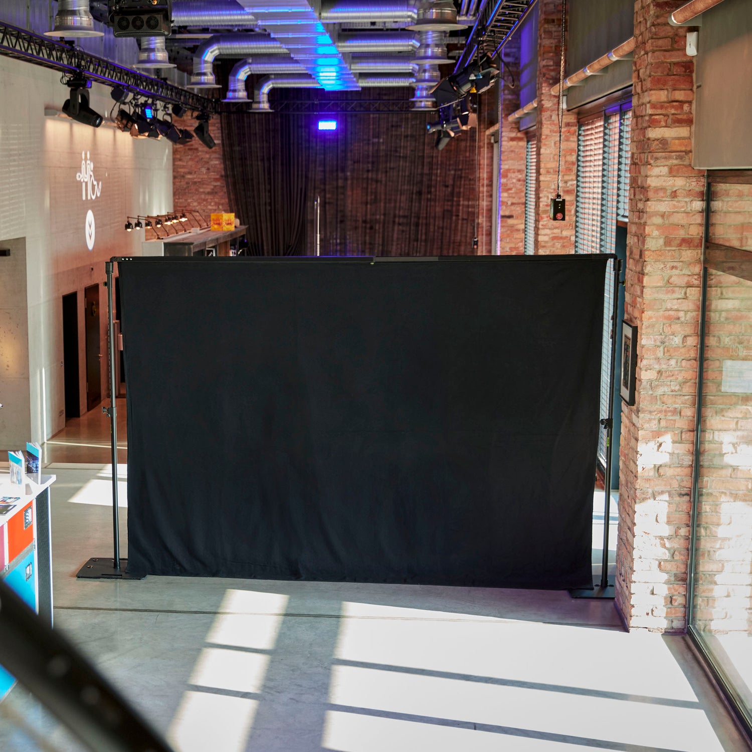 PAD T-teleskopkrydderstangen er fremstillet af aluminium og kan forlænges fra 190 cm til 350 cm, hvilket muliggør tilpasning af systemets bredde. Med vippeled i begge ender gør krydderstangen monteringen enkel og fleksibel uden behov for stige eller hjælp fra andre. PAD C B 1 sorte Molton-gardin måler 3,50 m x 2,55 m og har en praktisk velcrostrop til nem fastgørelse på PAD T-krydderstangen. Dette flammehæmmende gardin er fremstillet af EURO molton, har en tæthed på 320 g/m² og en samlet vægt på lige under 3 kg.