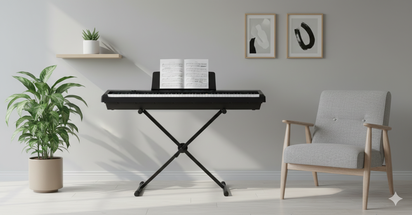 Grooveland P450 er et moderne og stilrent kvalitets el-klaver, der kombinerer autentisk spillefølelse med avanceret teknologi. Med 88 tangenter med hammer-action, får du en naturlig og dynamisk respons, der minder om et akustisk klaver – perfekt til både begyndere og øvede pianister.
