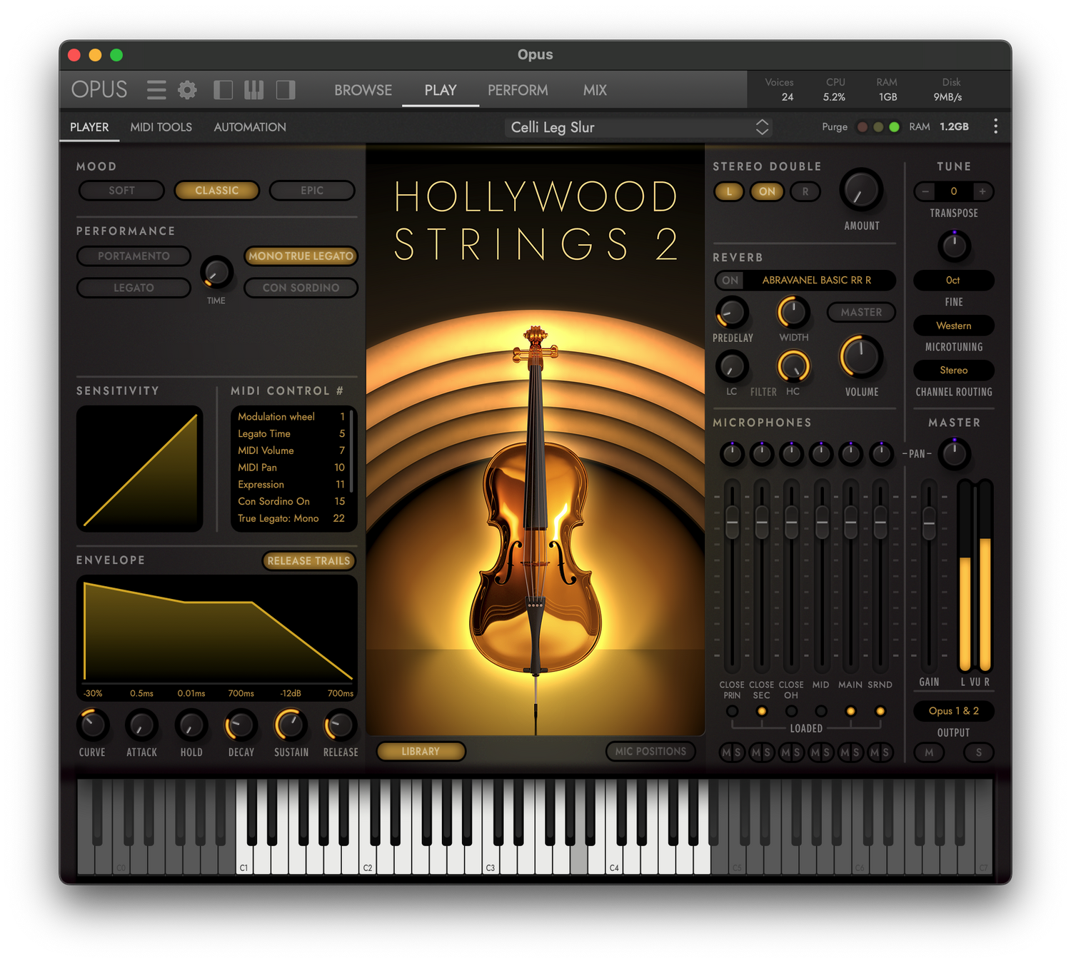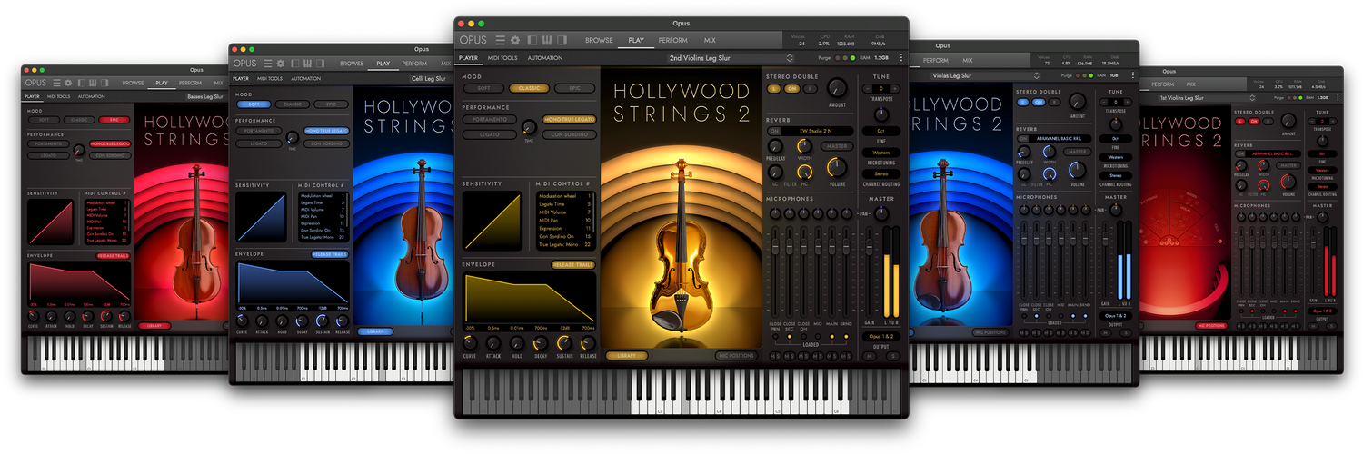 Hollywood Strings 2:lla on laaja kirjasto 134 huolellisesti valmistettua instrumenttia, tarjoten vertaansa vailla olevan äänimaailman mahdollisuuksia, mukaan lukien parhaat koskaan tallennetut soitettavat trillit ja juoksut. Yli 160 gigatavua laajasti näytteistettyjä ääniä, jokainen nuotti resonoi vertaansa vailla olevalla aitoudella, vangiten jokaisen instrumentin olemuksen hengästyttävällä tarkkuudella. Ja huipputeknologialla varustetun OPUS-moottorin avulla voit ladata heti vain ne yksittäiset instrumentit, joita tarvitset nopeaa käyttöä varten, tai ladata kaikki, valinta on sinun.