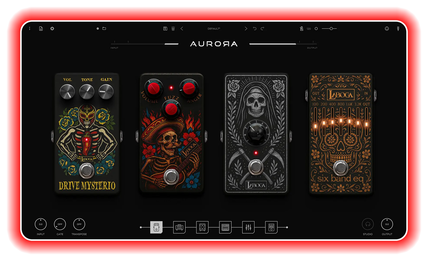 - Stomp Section: Four built-in pedals (Custom Overdrive—not a simple TS808 clone; OctaFuzz; Crunch Booster; 6-band Input EQ), fully rearrangeable in the signal chain.