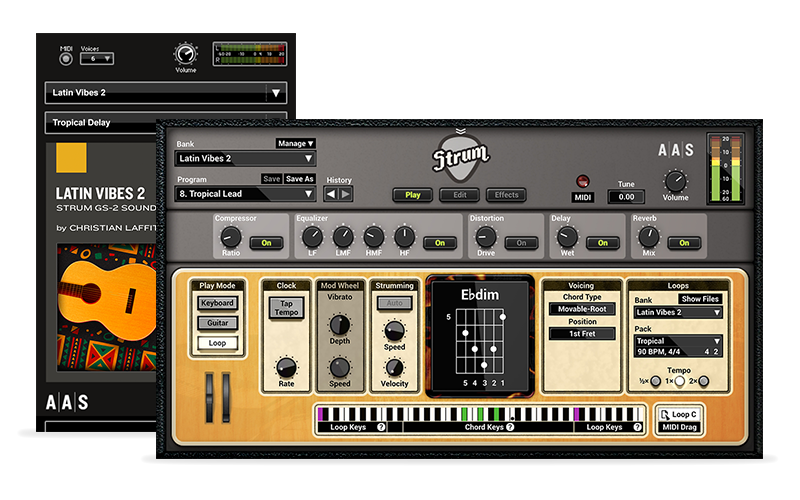 With its 12 styles, 84 guitar presets, and 84 strumming patterns playable with your own chord progressions, Latin Vibes 2 is jam-packed with groovy electric and acoustic strumming loops and sounds that will for sure add good vibrations to your next world music production.