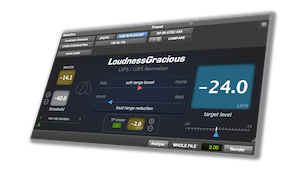 Loudness Gracious yhdistää WaveRiderin legendaarisen tason hallinnan Defaulterin äänenvoimakkuuden havaitsemiseen tarjoten sujuvaa ja tarkkaa äänenvoimakkuuden hallintaa offline-työskentelyssä. Olitpa sitten miksamassa lähetystä, elokuvaa, pelejä, podcastia tai musiikkia, Loudness Gracious vie sinut tarkkoihin LKFS/LUFS-arvoihin samalla kun se muotoilee dynamiikkaa säädettävillä suhteilla. Tuloksena? Puhtaat, luonnolliset äänet — nopeasti.