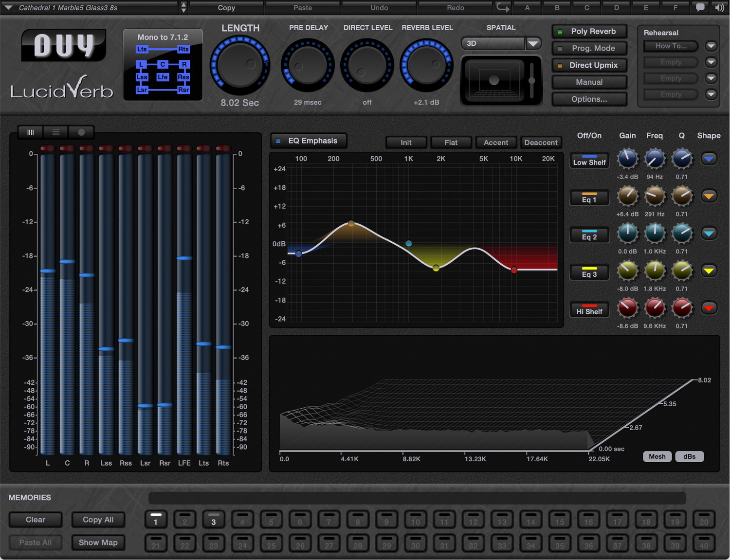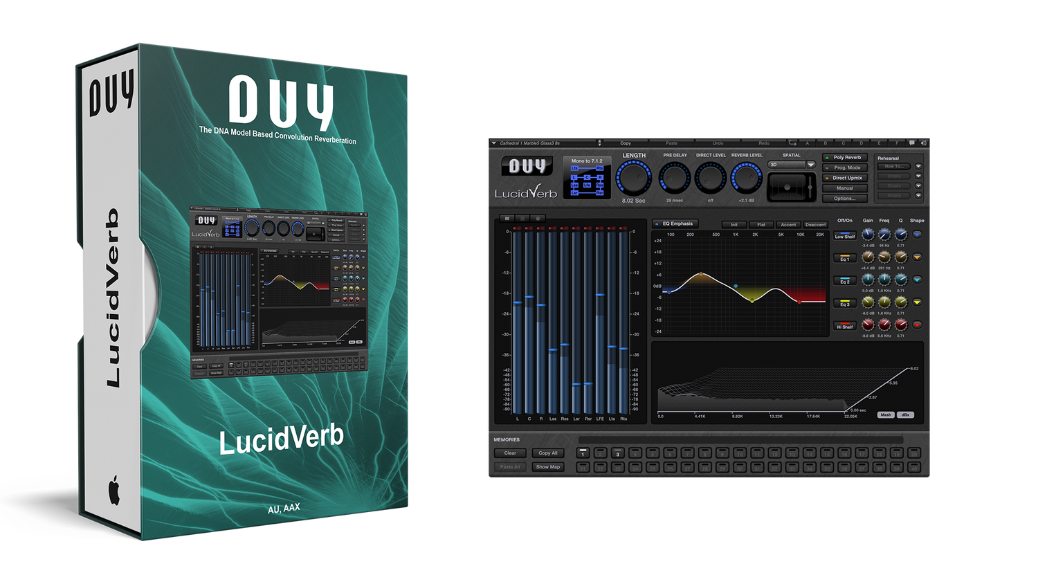 LucidVerb is a hybrid convolution reverberator featuring a proprietary sonic "DNA" modeler engine able to render any number of totally decorrelated impulse responses at lightning speed.