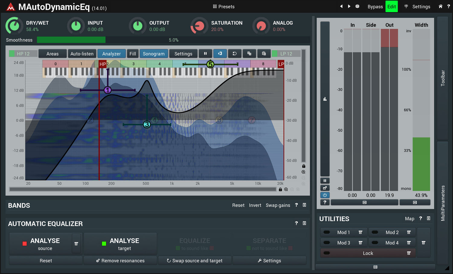 MAutoDynamicEq is so much more than an unbelievably transparent and musical sounding equalizer with a gorgeous interface stuffed with amazing features. It is an innovative plug-in introducing dynamic processing to the music world.