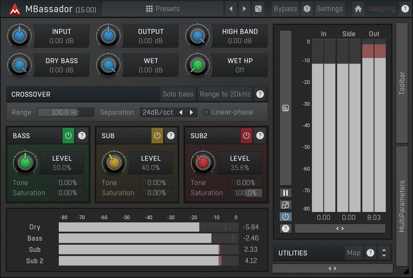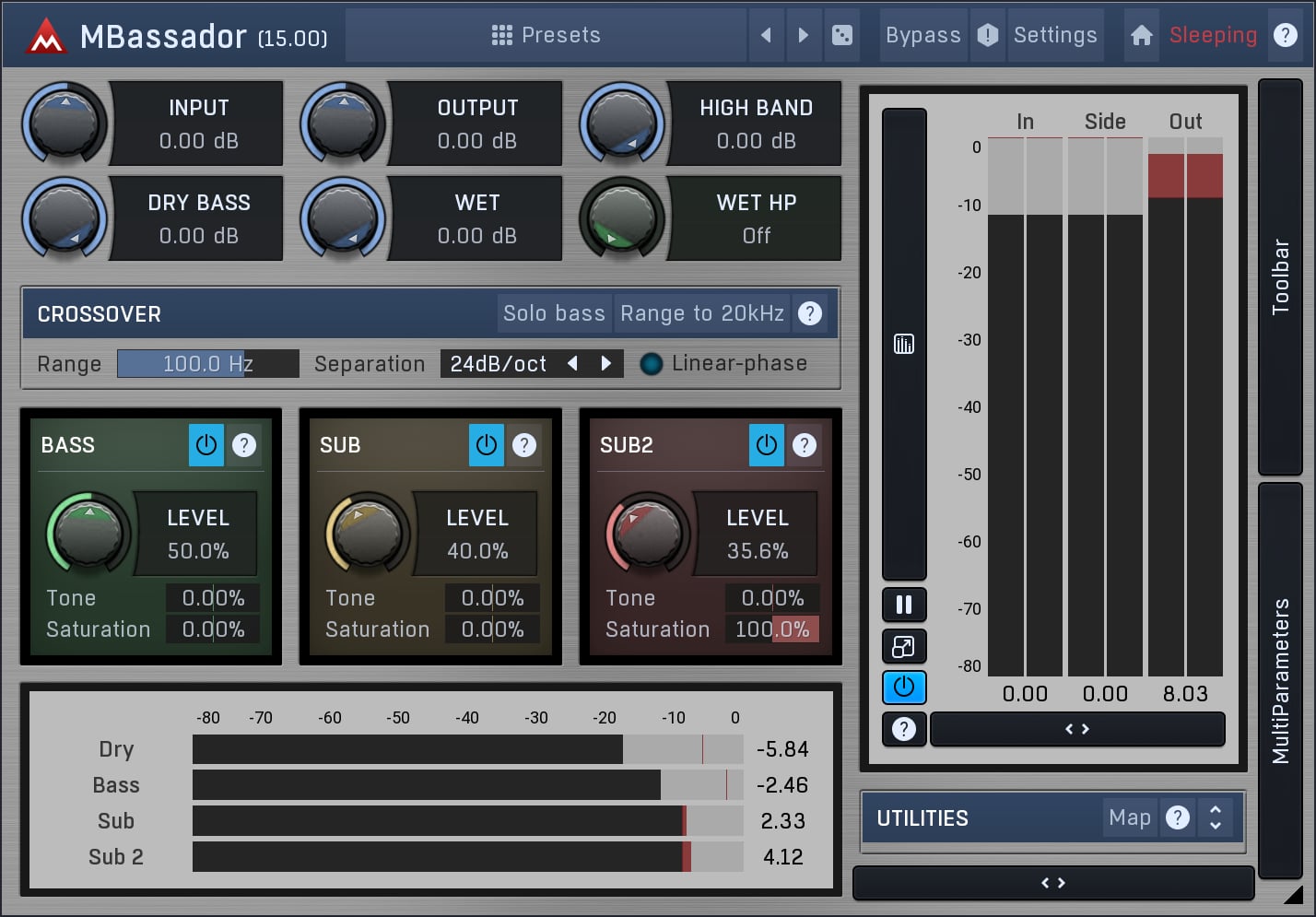 Modern mixes crave a distinctive tight bass spectrum. MBassador enhances your existing bass content and produces subbass spectrum as well. Pristine musical results within a few clicks.