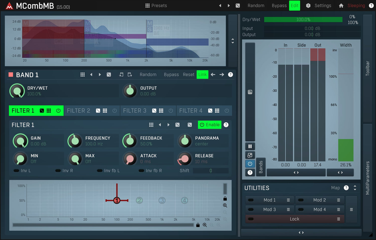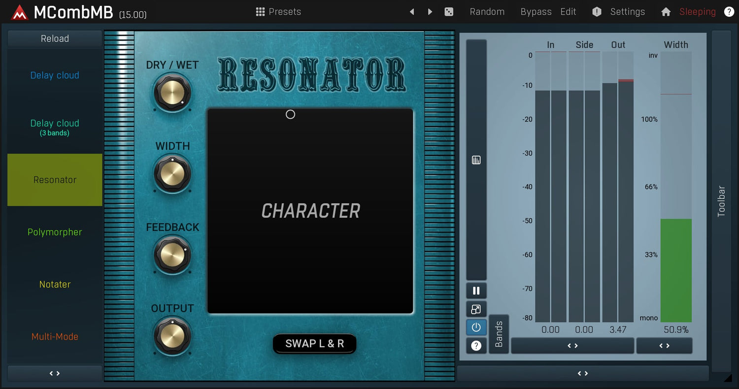 MCombMB is an extremely versatile multi-comb filter, designed for those seeking truly unique sound. Thanks to its smart-randomization engine you don't even need to be a scientist to get unbelievable moving textures, rhythmic pads or squealing drum loops.