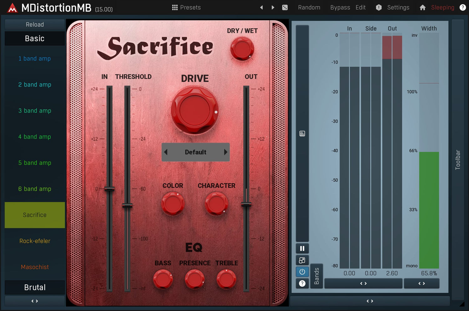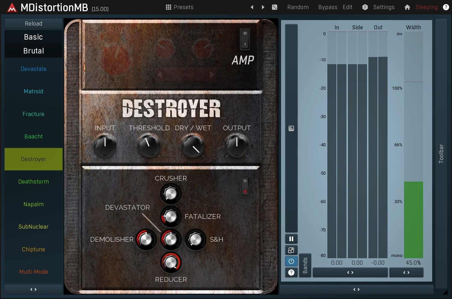 MMultiBandDistortion is a unique distortion plugin combining a generalized amp simulator with a digital distortion processor. It combines the best from the analog and digital worlds and is perfect for guitars, keyboards, drums or even just sound mangling.