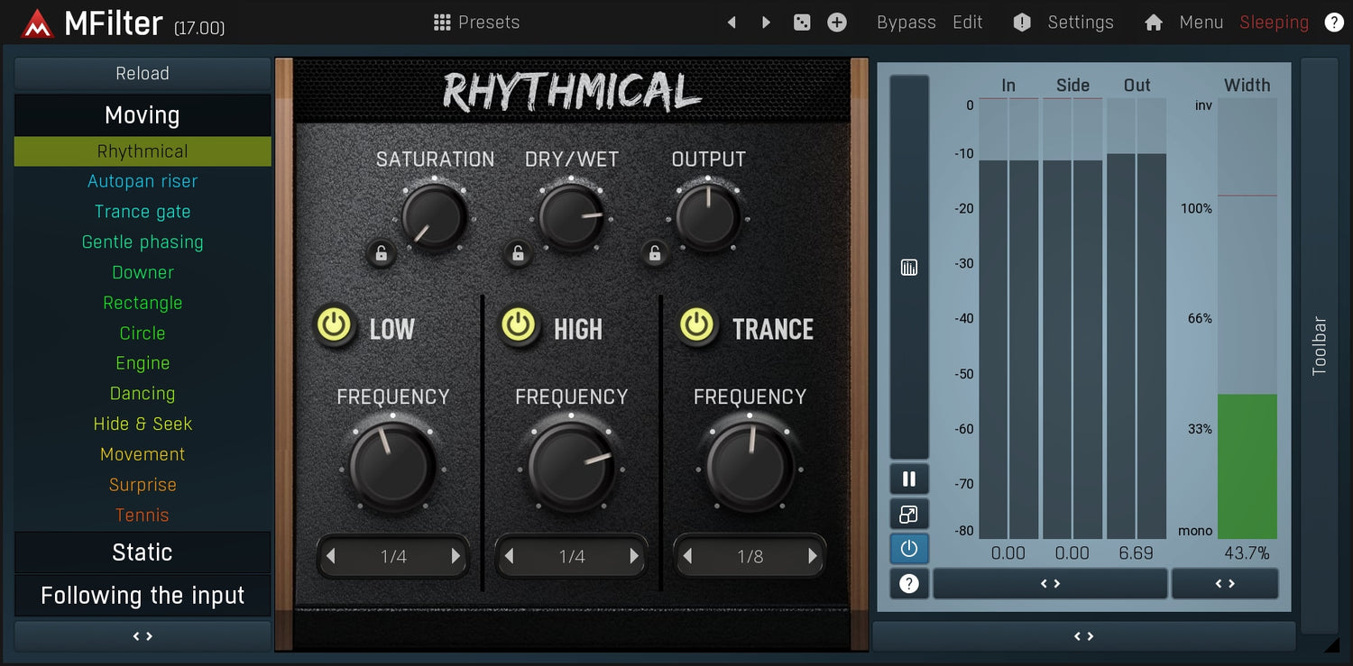 Kun tarvitset lisätä liikettä muuten staattiseen ääneen, suodatin on yksi ensimmäisistä prosessoreista, joita kannattaa kokeilla. MFilter voi todennäköisesti tehdä enemmän kuin voit kuvitella suodattimen olevan kykenevä.