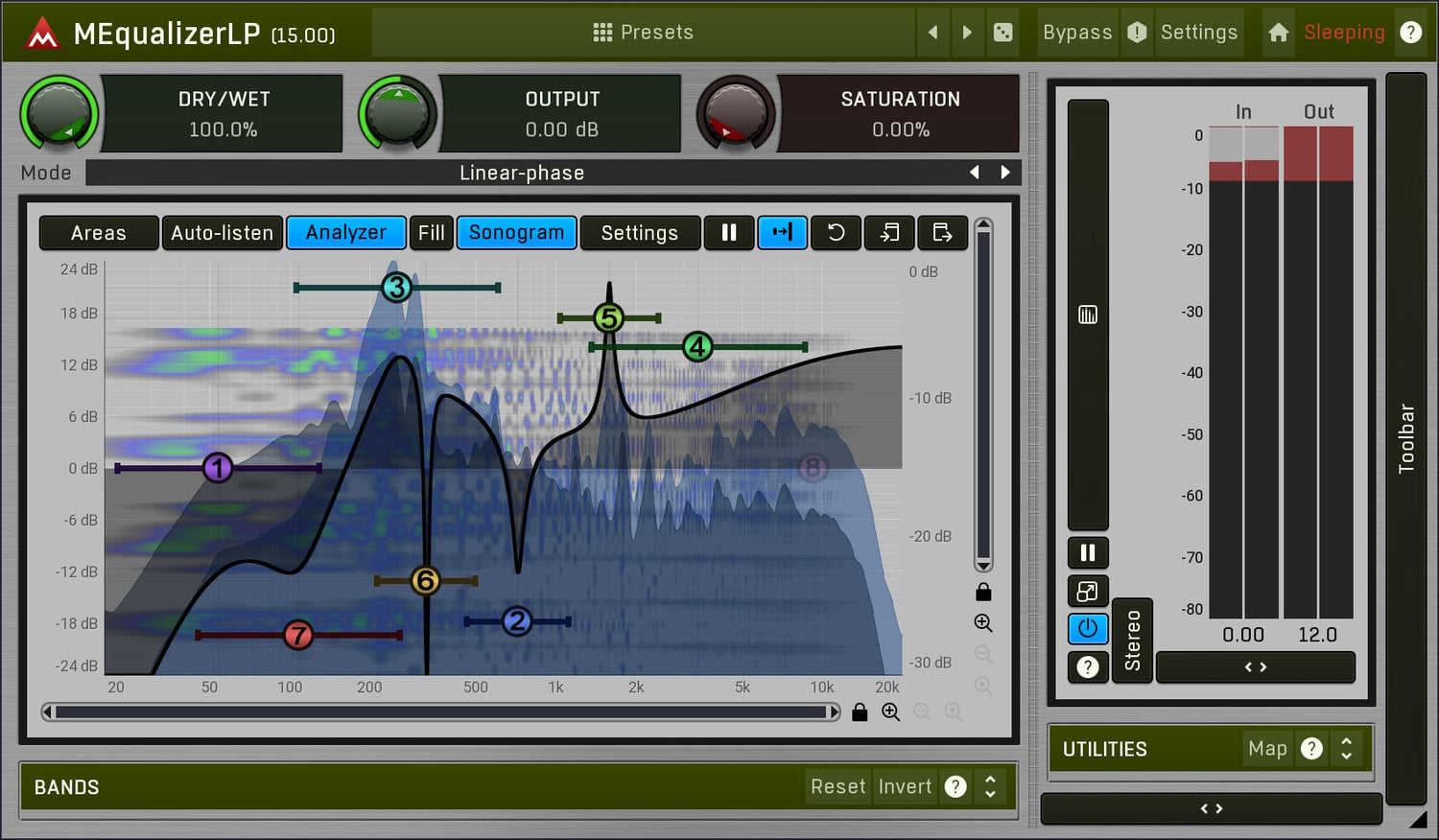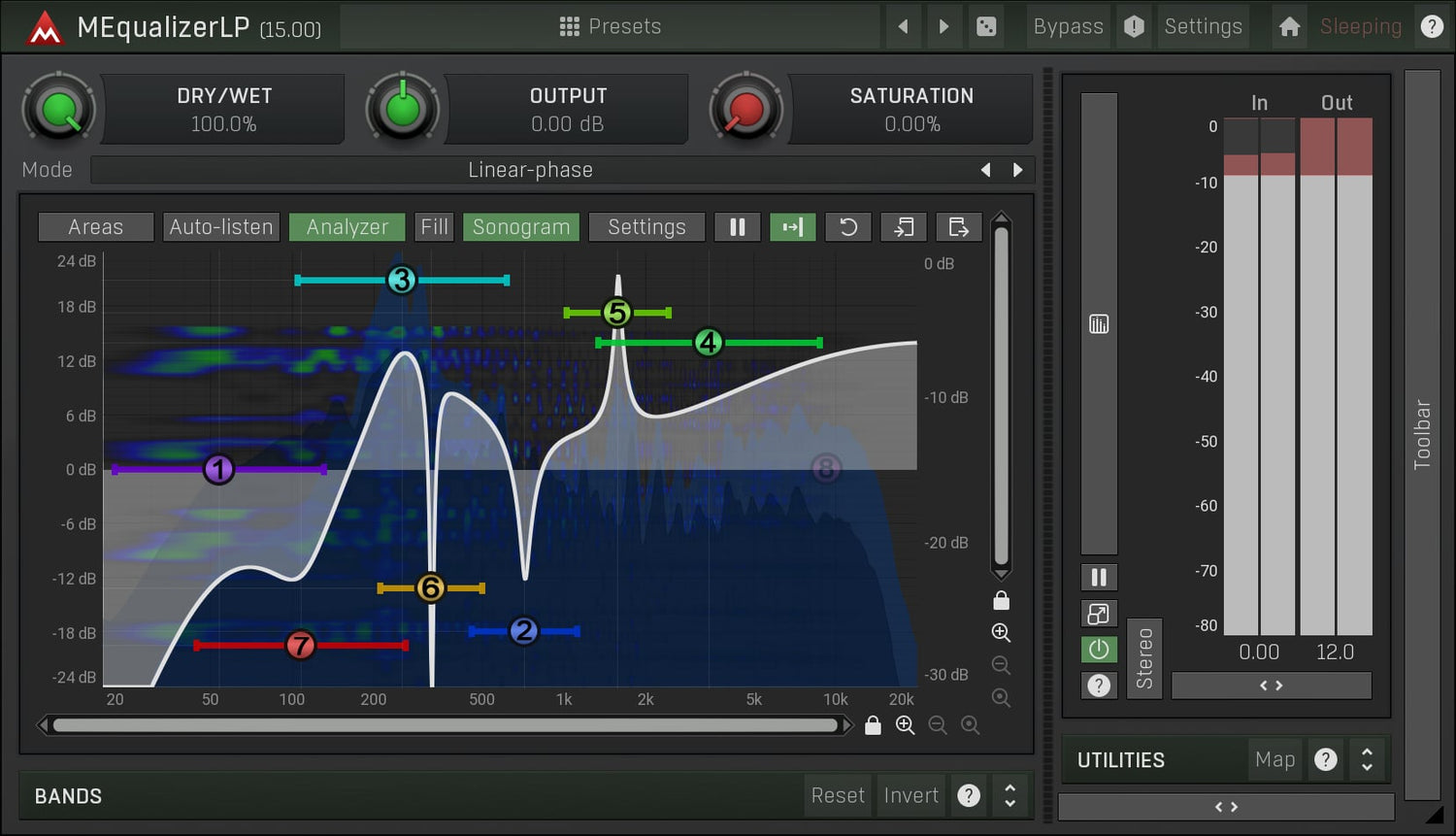 Linear-phase equalizers let you deal with situations where normal minimum phase equalizers just cannot be used. But they rarely sound really good. MEqualizerLP sounds just perfect!