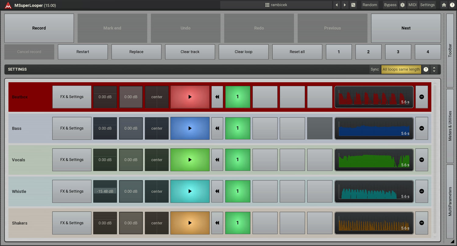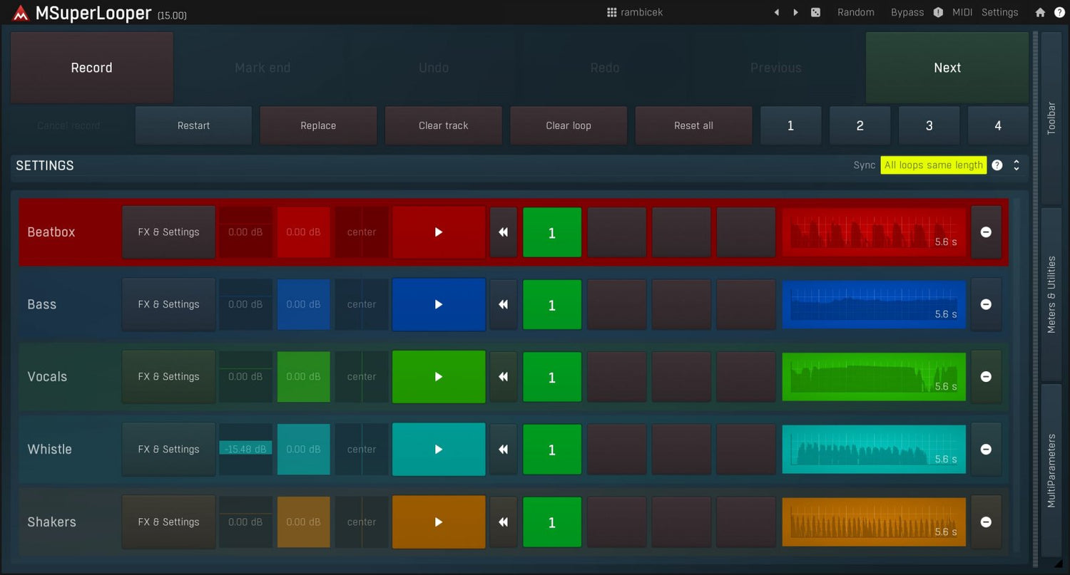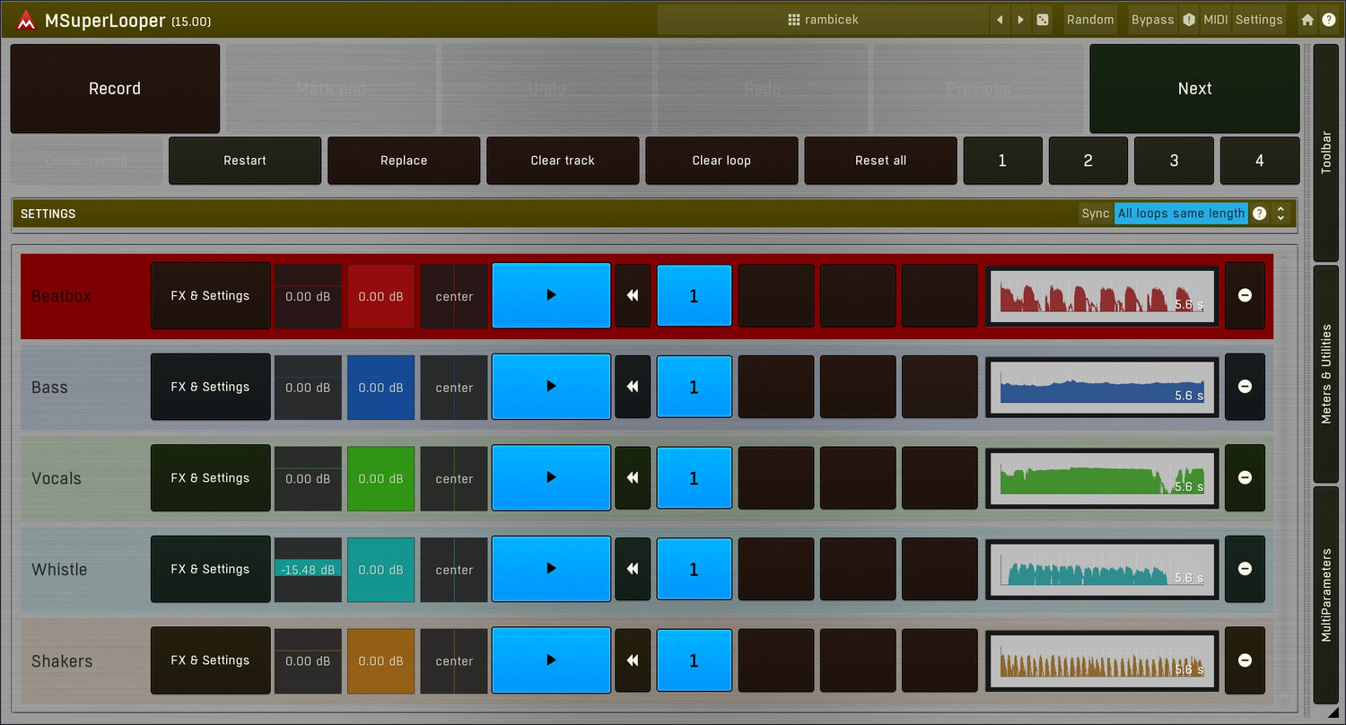 MSuperLooper is the next generation multitrack looping tool designed for live performances. Capturing ideas and getting creative was never easier. It is quick, versatile and offers endless options.