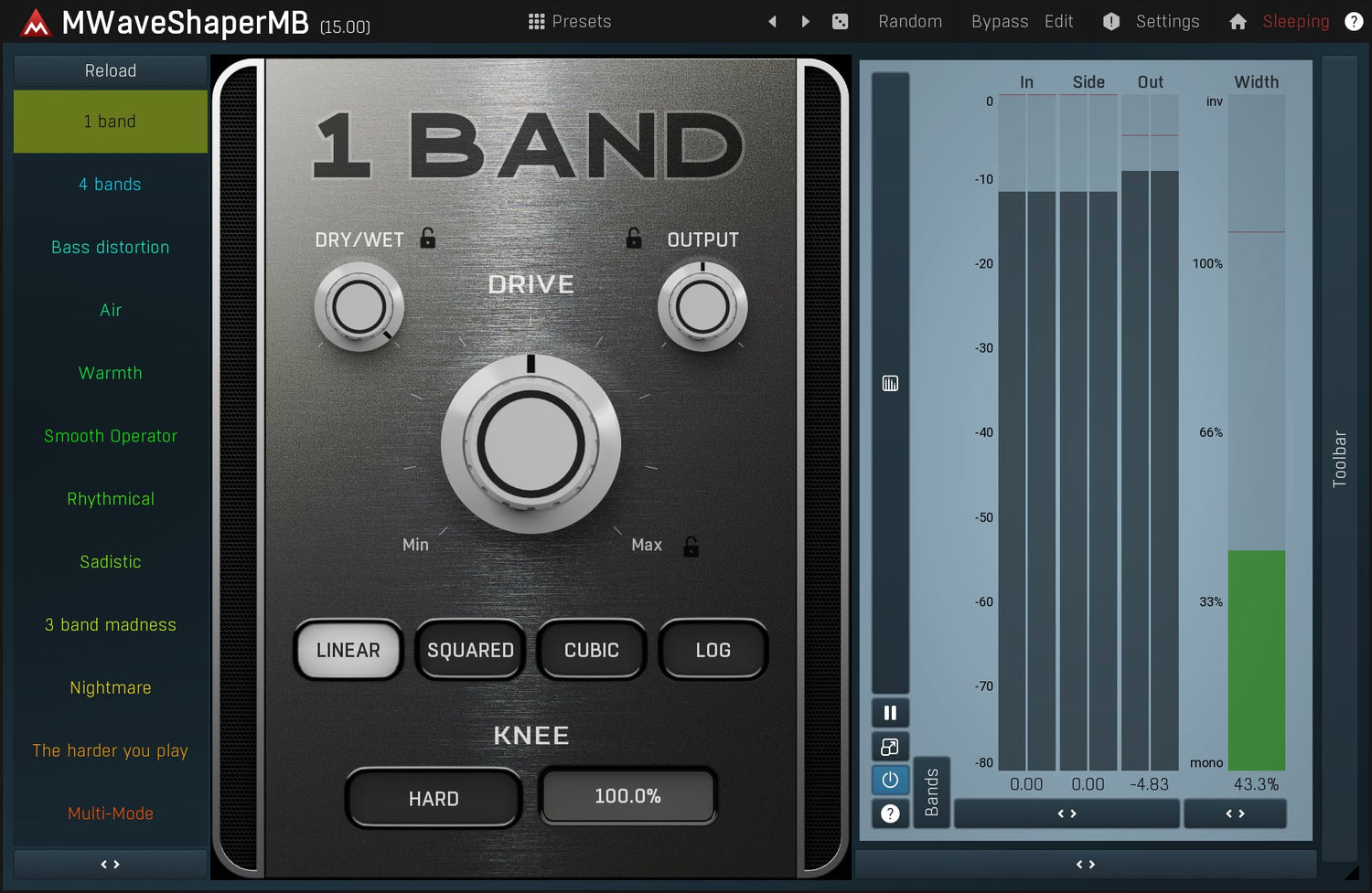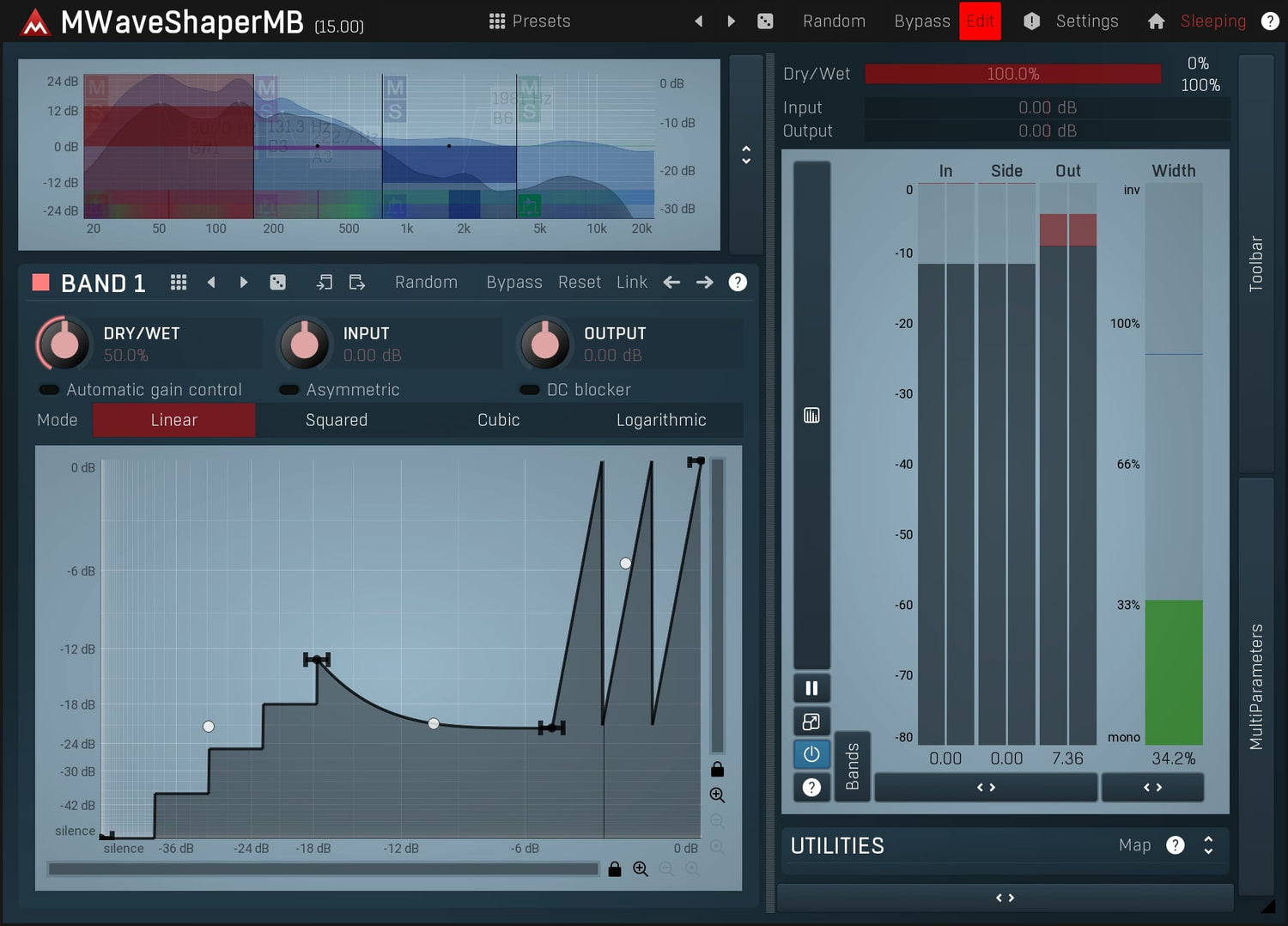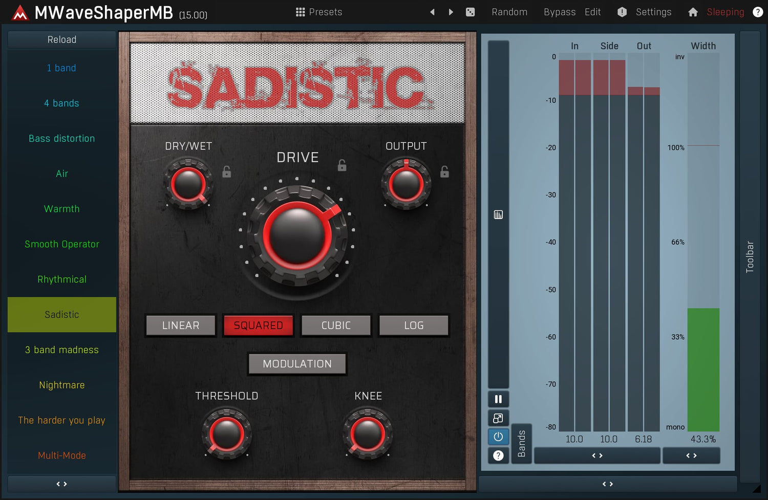 Waveshapers are the basic distortion modules but can be rather limited. But with MWaveShaperMB you can draw your own shapes and process up to 6 bands separately. Perfect for sound manglers searching for a really original distortion.