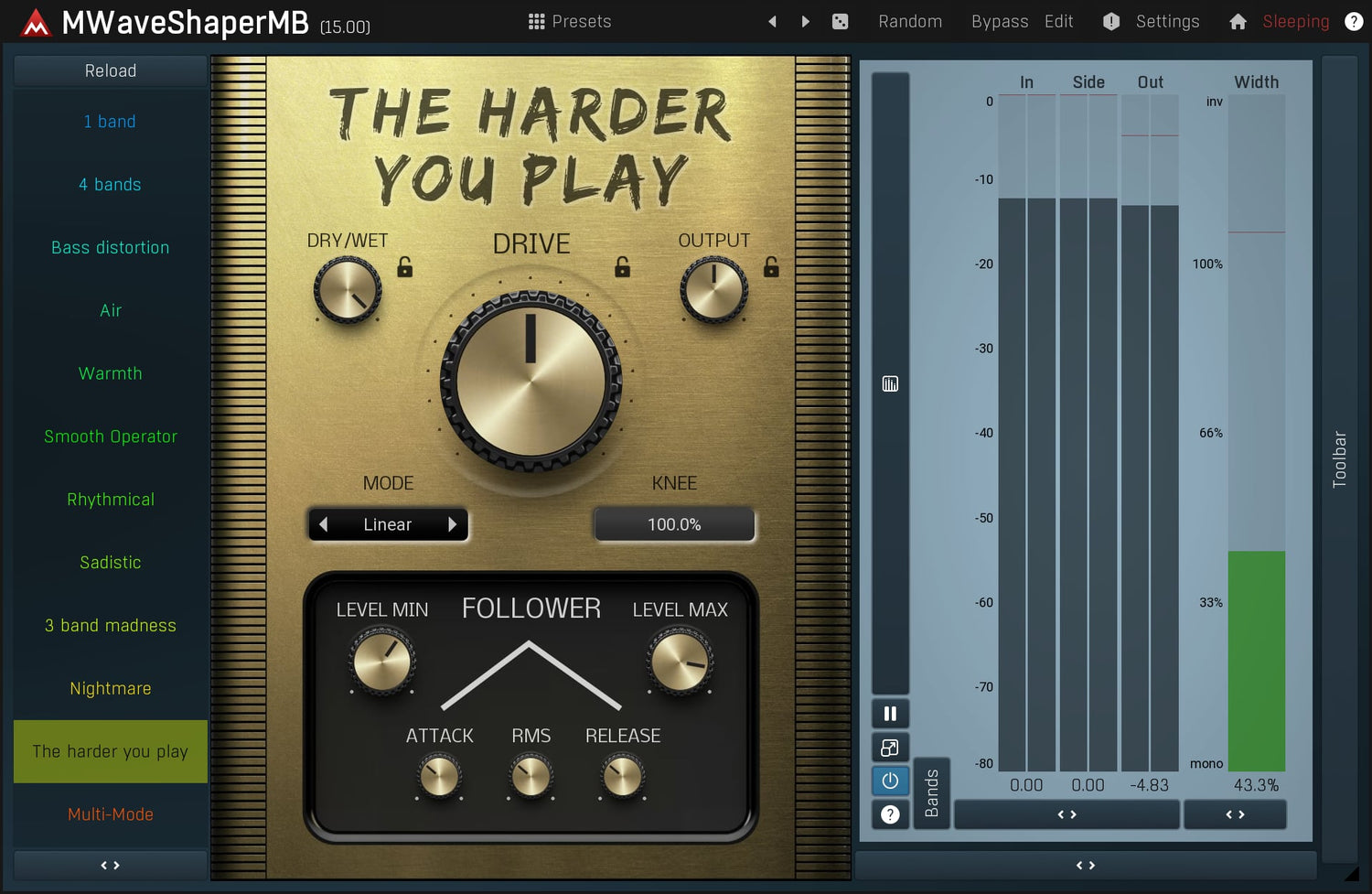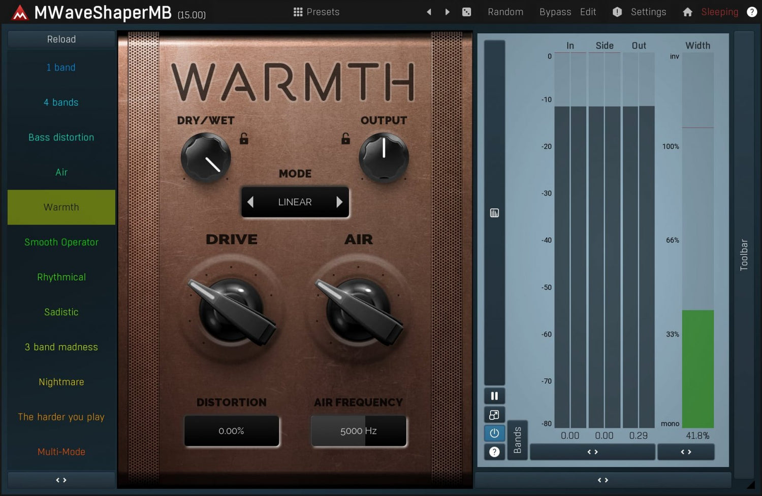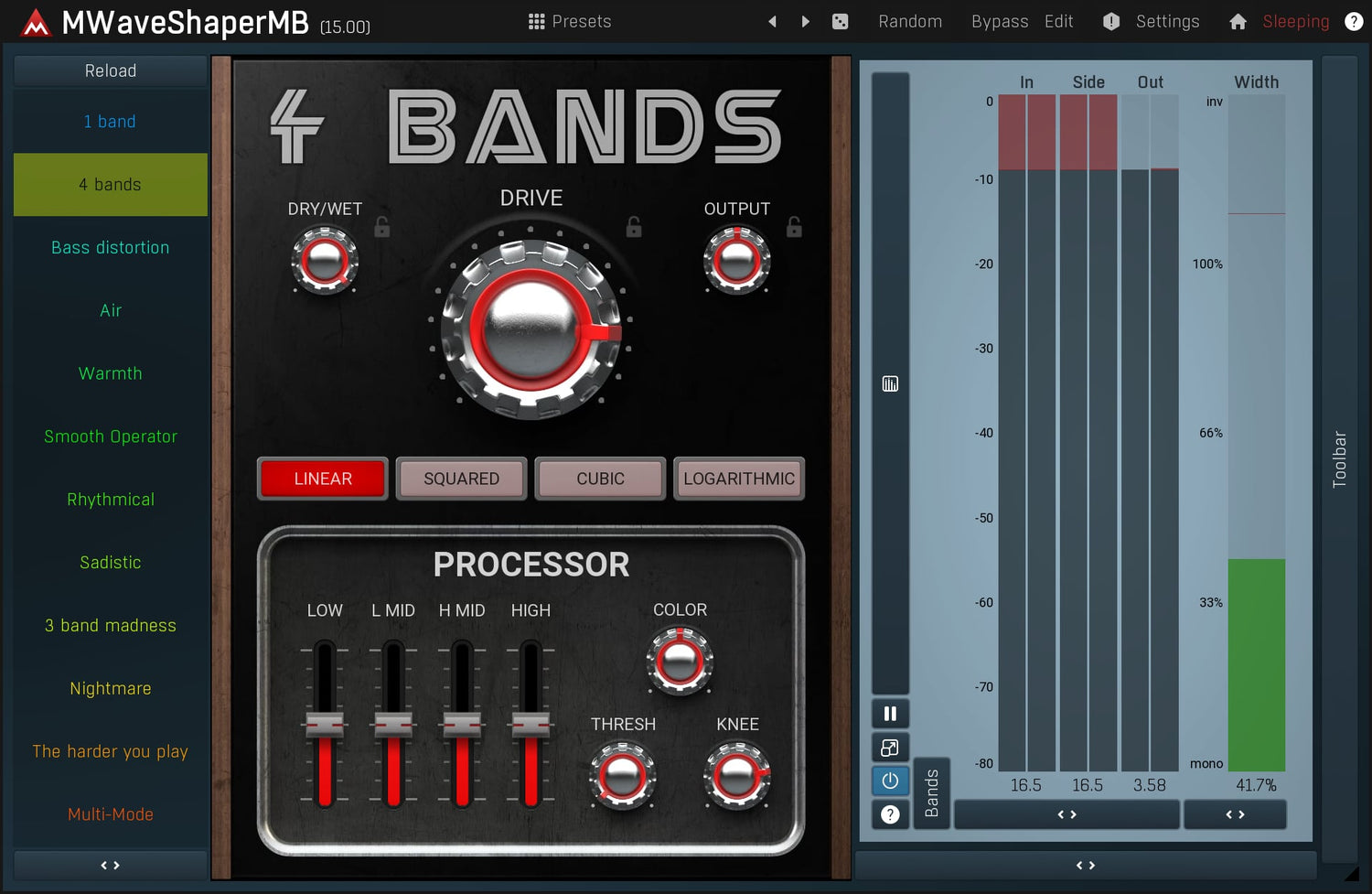 Waveshapers are the basic distortion modules but can be rather limited. But with MWaveShaperMB you can draw your own shapes and process up to 6 bands separately. Perfect for sound manglers searching for a really original distortion.