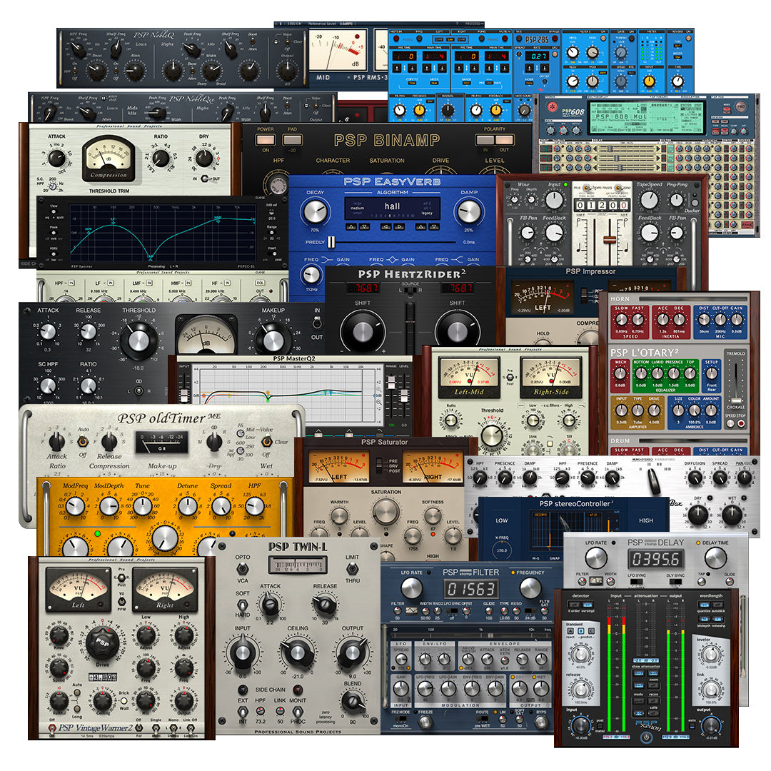 Paketti sisältää kaiken, mitä tarvitset miksaukseen, masterointiin ja luovaan äänisuunnitteluun. Monipuolisista PSP BussPressorista ja PSP ConsoleQ:sta, jotka ovat täydellisiä kappaleidesi tasoittamiseen, ylellisiin PSP EasyVerb- ja PSP PianoVerb 2 -kaikuun, tämä kokoelma kattaa laajan valikoiman audio prosessointia. Työkalut kuten PSP Saturator ja PSP Echo lisäävät analogityylisiä lämpöä ja syvyyttä, kun taas innovatiiviset efektit kuten PSP StompDelay ja PSP StompFilter vievät luovuutesi uusille alueille.