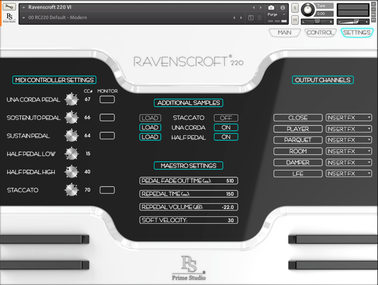 - Ravenscroft 220 Virtuaalinen Instrumentti on tulos yhteistyöstä Prime Studio® GmbH:n, Itävallan ja Ravenscroft® Pianosin, Yhdysvaltojen välillä.
