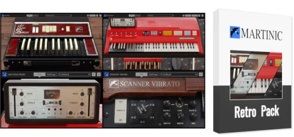 Retro Pack tarjoaa erityisen pakettihinnan Martinicin tarjoamille alkuperäisille 4 vintage-instrumentti- ja fx-pluginille.