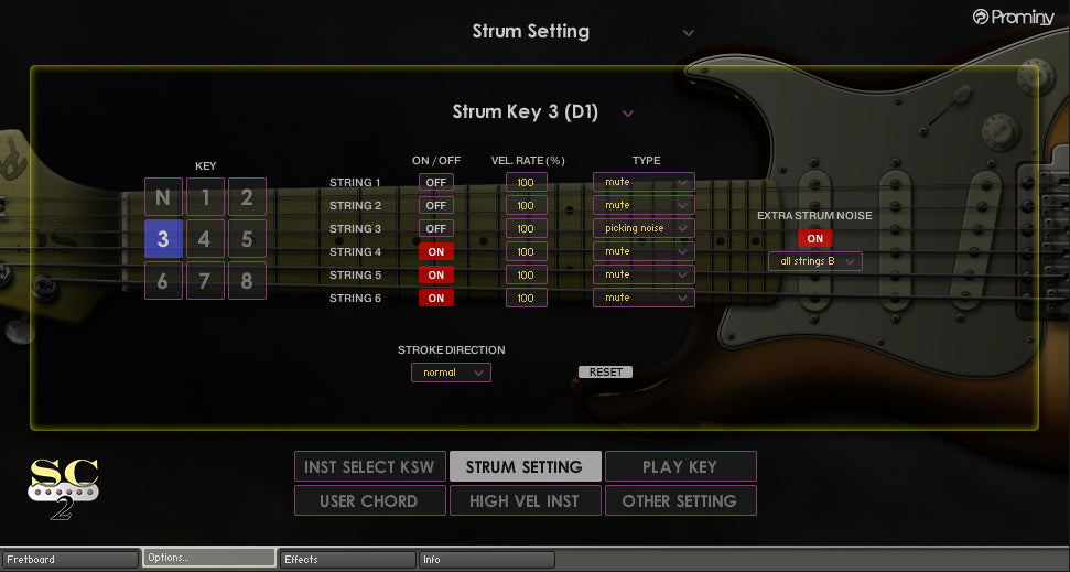 * SC Electric Guitar käyttää häviötöntä näytepakkausmuotoa 'NCW' reaaliaikaisella koodauksella. Asennuksen jälkeen datakoko on noin 81 GB, mikä vastaa 147 GB .wav-tiedostoja.