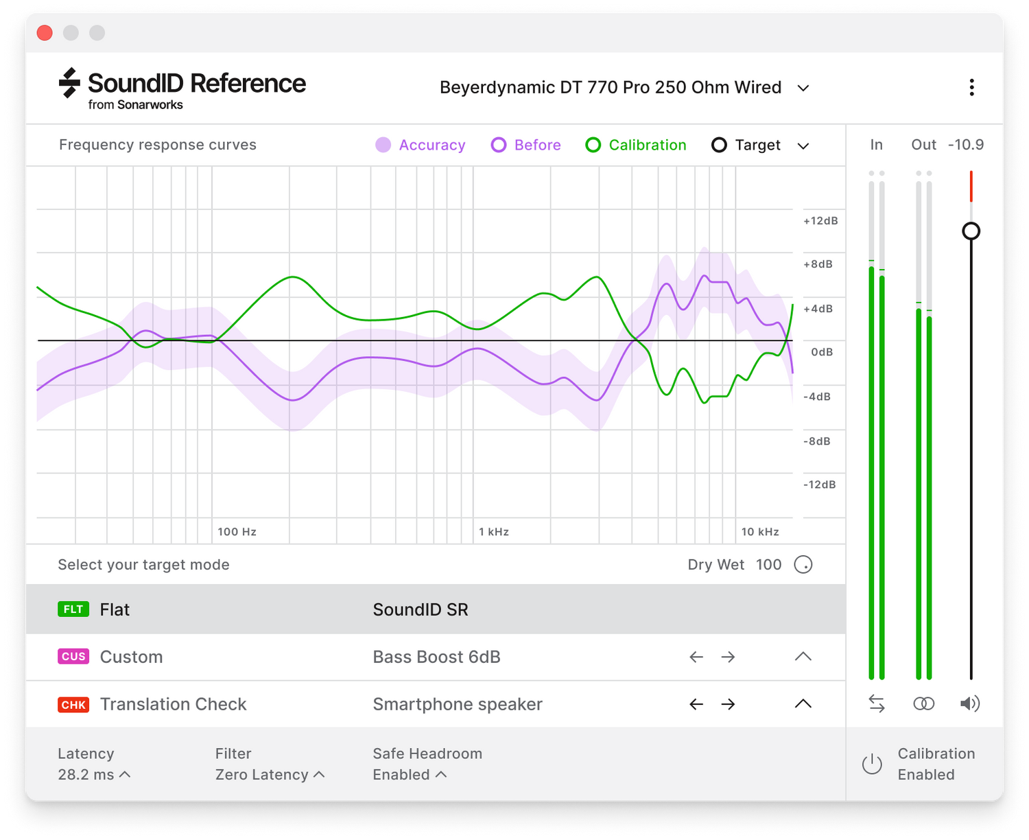 Kuulokkeiden kalibrointiohjelmisto, joka tarjoaa jatkuvasti tarkkaa studio-viiteääntä olemassa olevilla kuulokkeillasi. Ohjelmisto sisältää yli 280 kuulokkeiden kalibrointiprofiilin esiasetusta. Kun käytetään sovellettua kuulokkeiden kalibrointiprofiilia, ohjelmisto asettaa taajuusvasteen tavoitteen täysin tasaiseksi kaikilla kuultavilla taajuuksilla. Kuulokkeiden taajuusvasteen tavoite on suunniteltu jäljittelemään neutraalisti soivia kaiuttimia. Kalibroiduilla kuulokkeilla kuulet tasaisen, johdonmukaisen äänen missä tahansa oletkin.
