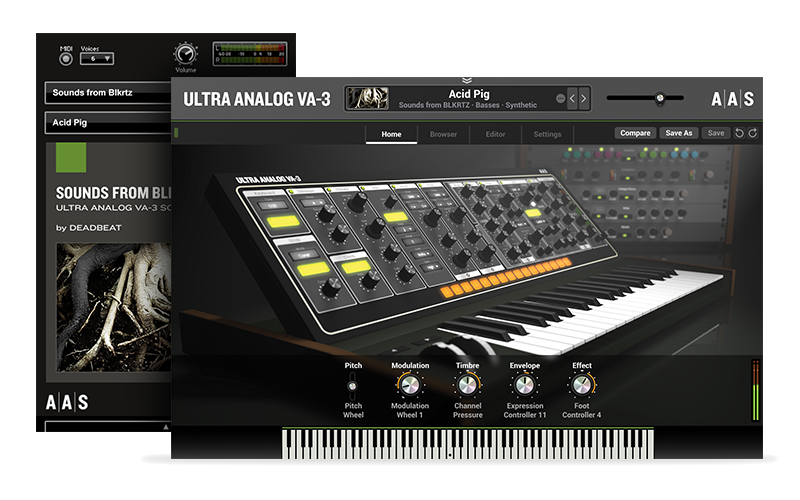 Inspired by his work in a wide array of genres over the last 12 years, Deadbeat's Sounds from BLKRTZ is a collection of 100 presets for Ultra Analog VA-1 which truly push the instruments to its earth shaking low and shimmering high extremes.