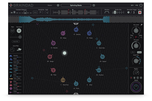Jopa 64 jyvällä Graindad tarjoaa laajat mahdollisuudet määritellä ääntäsi reaaliajassa. 12 pääparametrin avulla pääsy granular-synteesiin on nopeaa ja tehokasta.