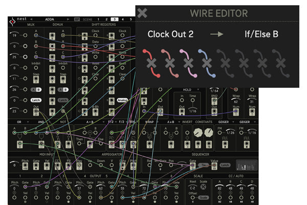 Nest on erittäin joustava sävellystyökalu, joka yhdistää klassisen transistorilogikan moderniin tietokonefunktionaalisuuteen. Johdotus tarjoaa loputtomia mahdollisuuksia ja yllätyksiä. 12 patch-skenaariolla ja tehokkaalla ääniinterfaceellä Nest on pieni laboratorio monimutkaisille, älykkäille musiikkikoneille.