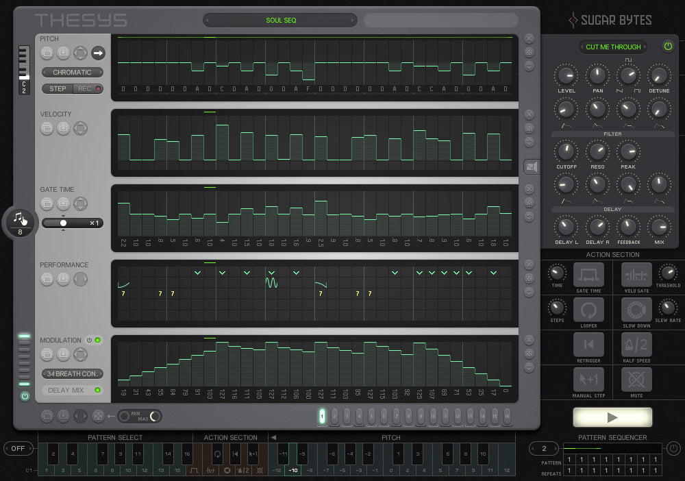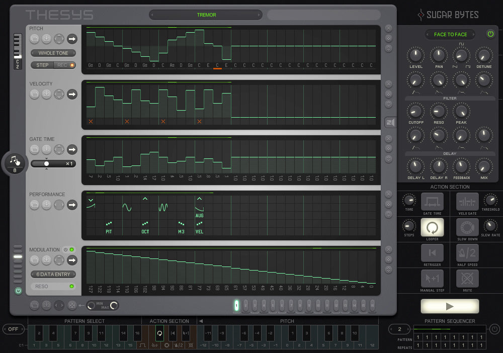 Step Sequencers ovat houkutteleva konsepti. Koneet, jotka tekevät musiikkia. Kuka voisi paremmin herättää genien koneessa kuin Thesys, askelperusteisen musiikin luomisen piirustuspöytä? Hienostunut Randomizer on valmis, riippumatta nykyisestä tilanteesta, muuntamaan olemassa olevaa materiaalia tai tuomaan uuden lähestymistavan pöydälle.