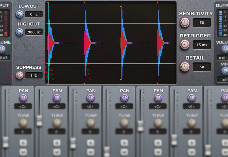 TRIGGER mahdollistaa kahdeksan moninopeusnäytteen kerrostamisen sen näytteen sekoittimessa. Tämä tarkoittaa, että voit käyttää useita lähellä mikrofonikerroksia, overhead-kerroksia, huoneen mikrofonikerroksia ja muita, kaikki yhdessä näytteen instanssissa. Käyttämällä klassista sekoitinta voit muokata täydellistä lopullista näytteen sävyä. Kahdeksan kanavan sekoitin mahdollistaa myös hybridinäytteiden luomisen käyttämällä erilaisia rumpunäytteitä ja sekoittamalla niitä yhteen.