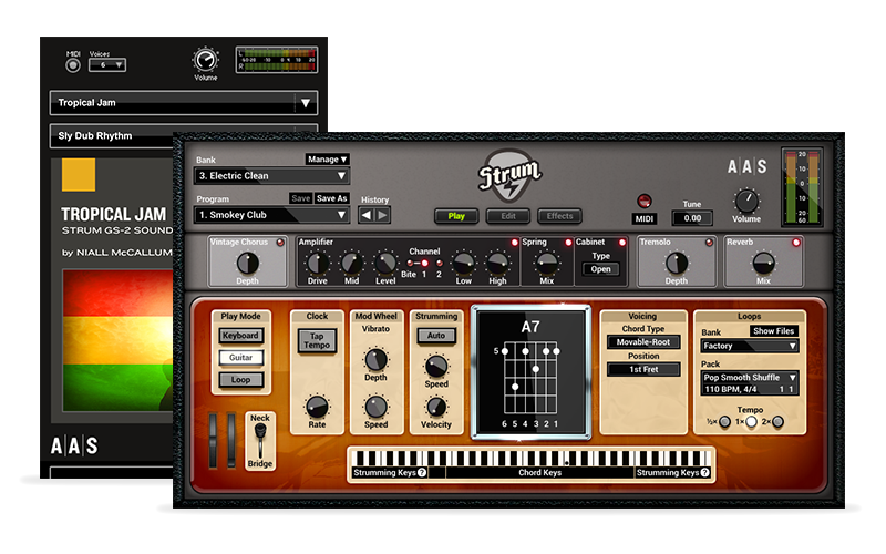 Resident sound designer Niall McCallum welcomes you to your own slice of strummed Caribbean paradise with Tropical Jam—a Strum GS-2 sound set with an abundance of laidback grooves and an awesome vintage vibe. From sub-heavy muted riffs and offbeat chords to delay-drenched stabs and relaxed picked melodies, this preset collection will have you falling in love with the spiraling sound of the spring reverb all over again.