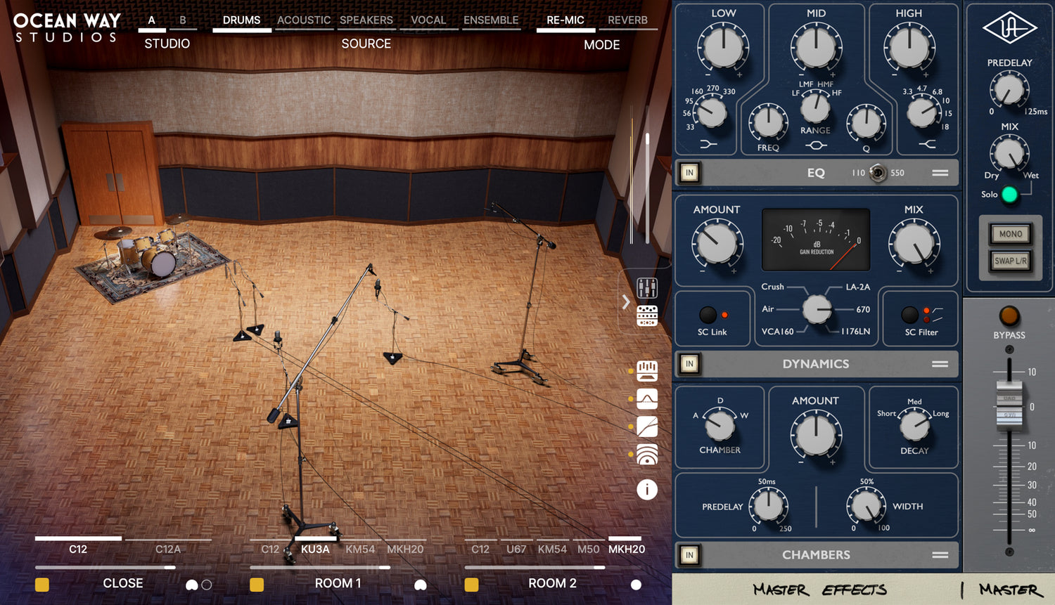 Ocean Way Studios Deluxe menee paljon pidemmälle kuin alkuperäinen palkittu UAD plug-in, antaen tuotannoillesi legendaarisen äänen musiikin historian merkittävimmistä huoneista, kaiku-tiloista ja mikrofoneista. UA:n ainutlaatuisen Dynamic Room Modeling -teknologian avulla voit nyt helposti lisätä saman ulottuvuuden, tilan ja sävyn, jota on kuultu äänityksissä Ray Charlesilta ja Frank Sinatralta Whitney Houstoniin, Radioheadiin ja Beckiin.1