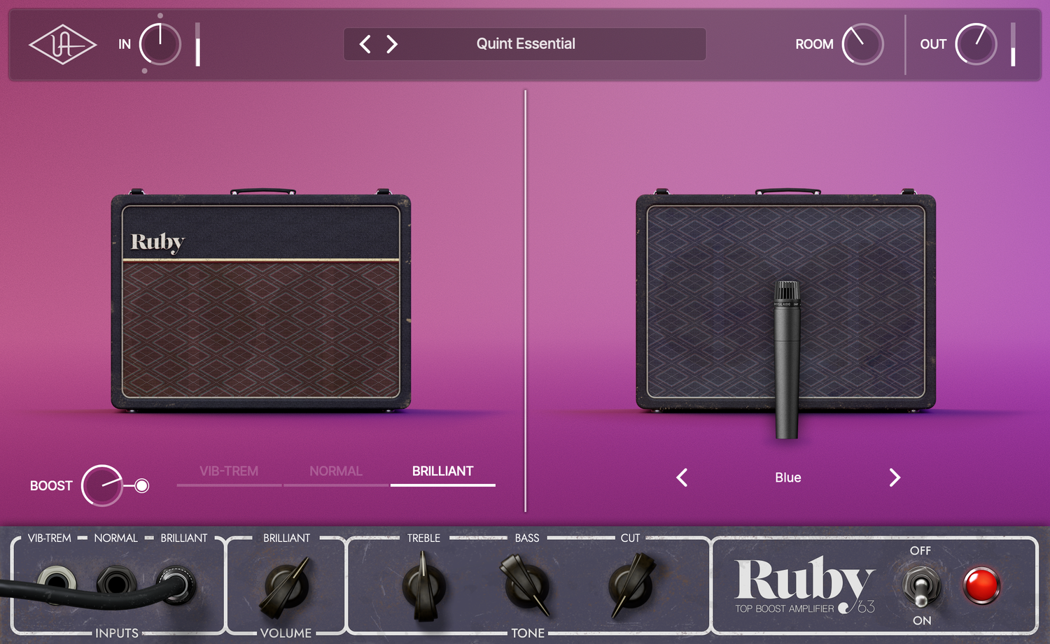 UAD Ruby '63 antaa sinulle Normal, Brilliant ja Vibrato kanavat alkuperäisestä vahvistimesta — joten voit lentää Irlantiin, Lontooseen tai Liverpooliin kytkimen kääntämällä. Mellowista kimeään ja rouheaan, kaikki on täällä, vertaansa vailla olevan äänen ja tunteen kanssa, joka on todella ikoninen vahvistin.