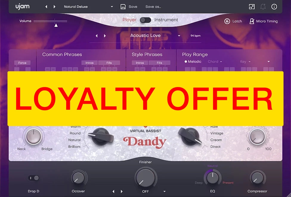 DANDY on täydellinen kaikille tuottajille kaikilla taitotasoilla. Virheettömät säädöt varmistavat, että aloittelijat saavat upeita ääniä, jotka eivät kuulosta valmiilta toistuvilta silmukoilta. Taidokkaat kosketinsoittajat voivat helposti ohittaa virtuaalimuusikon ominaisuudet ja soittaa bassokohdat juuri niin kuin he haluavat. Kaikki saavat upeaa bassoa tuotannoissaan!