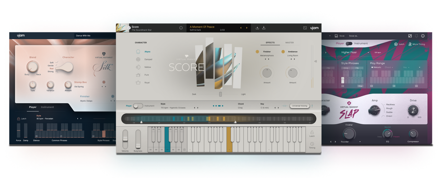 Virtual Pianist SCORE tarjoaa elokuvamaisia piano-esityksiä, kun taas Virtual Guitarist SILK 2 soittaa ammattimaisesti kuulostavia akustisia kitarapartteja. Lisää energiaa Virtual Bassist SLAPin dynaamisilla funk-tyyleillä.
