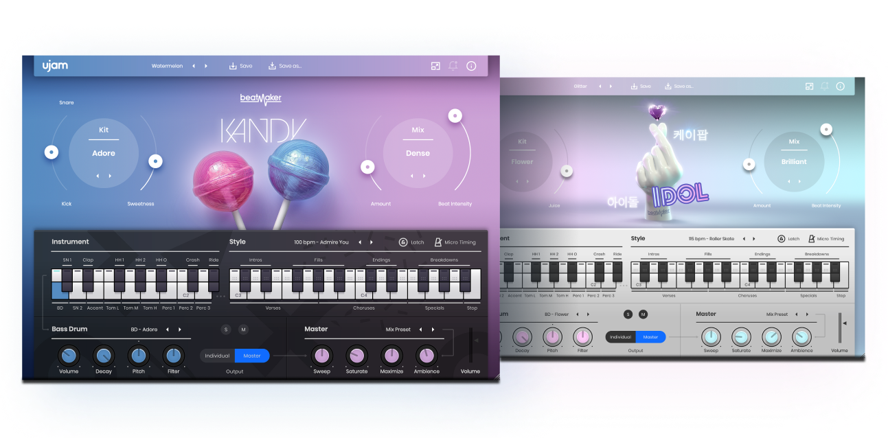Elävöitä kappaleesi Beatmaker KANDYllä kiiltävien pop-rytmejen ja Beatmaker IDOLin eloisien K-Pop- ja EDM-inspiroitujen tyylien avulla. Täydellinen chart-topping luomuksiin.
