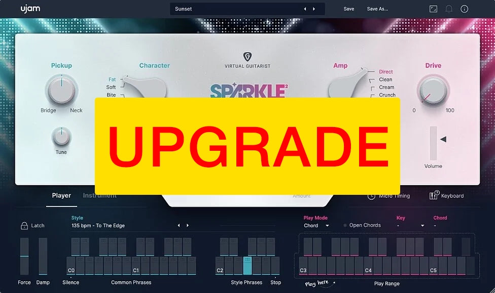 Virtual Guitarist SPARKLE 2 perustuu räätälöityyn vintage-kitaran, joka hyödyntää sen single-coil-mikrofoneja saadakseen aikaan legendaarisen ja ajattoman kellomaisen äänen. Aivan kuten sen arvostetut fyysiset vastineet, SPARKLE 2 on monipuolinen instrumentti, jossa on 30 eri tyyliä, jotka sisältävät yli 350 fraasia välittömään tyytyväisyyteen säveltämisessä.