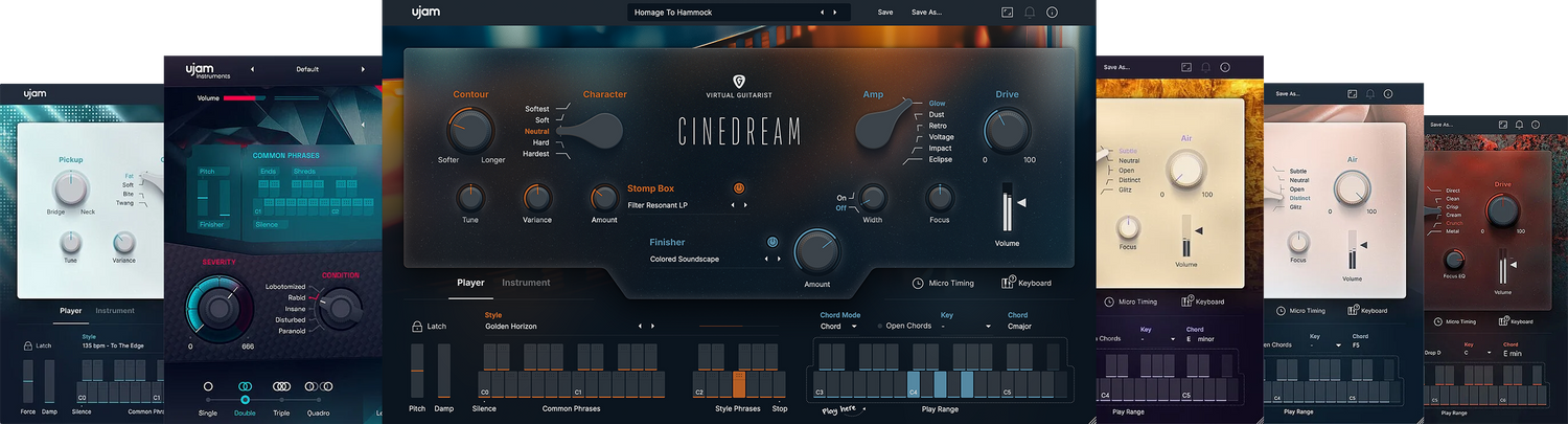 Esittelyssä Virtual Guitarist AMBER, IRON, SPARKLE, SILK ja CARBON UJAMilta – sarja virtuaalisia sähkö- ja akustisia kitarapluginia, jotka on suunniteltu mahdollistamaan kaikille upean kuuloisen kitaran säestyksen saaminen erilaisissa tyyleissä vähällä vaivalla.