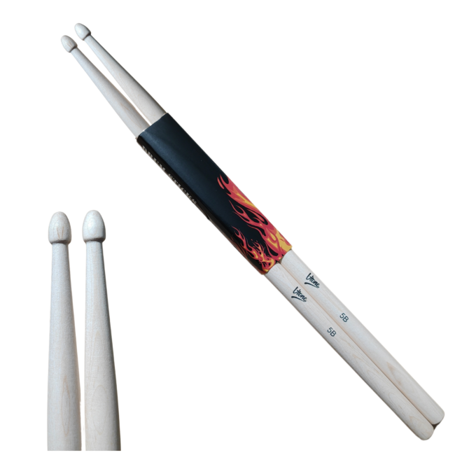 V-Tone DS-5B leveres i et praktisk sæt med to par trommestikker og har en naturlig finish, der giver et sikkert greb under spil.