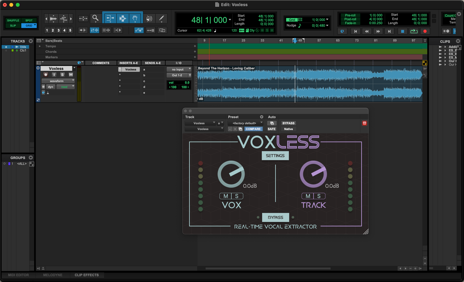 Compatible with all major DAWs, including ProTools, Logic Pro X, and Cubase, VOXLESS is ideal for DJs, mash-up enthusiasts, as well as mixing and mastering engineers who want to tweak a mix without requiring the original stems.