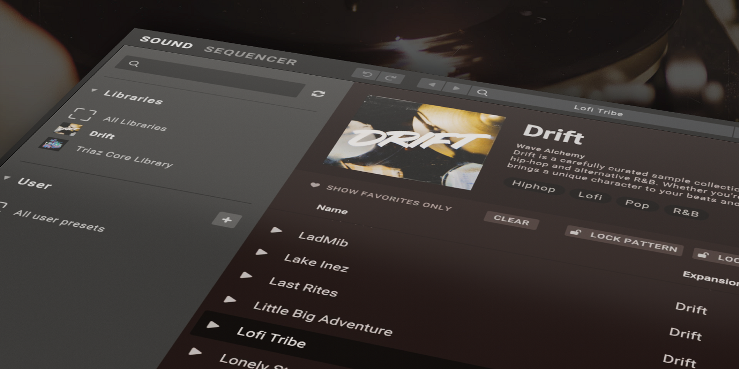 Lataa Drift Triaziin avatakseen sen koko potentiaalin. Yli 315 asiantuntevasti suunniteltua esiasetusta avulla voit tutkia laajaa valikoimaa rumputyylejä, pölyisestä boom bapista ja sielukkaista grooveista kokeellisiin alt-pop-kitteihin ja ilmastollisiin tekstuureihin.