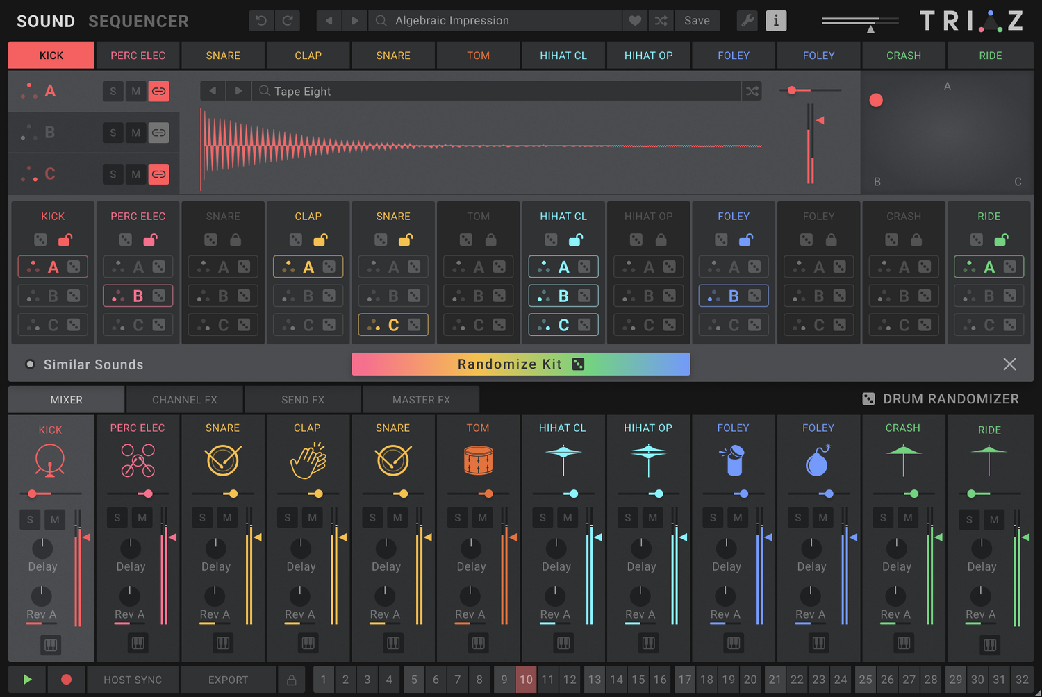 Triaz on seuraavan sukupolven rumpumoottori, joka määrittelee uudelleen, mitä on mahdollista rytmintuotannossa. Yhdistämällä salamannopeat polyrytmiset sekvenssit, tehokkaan rumpujen kerrostamisen, per-askeleen parametrimuokkauksen ja mullistavan satunnaistamismekanismin, Triaz antaa sinun luoda, muokata ja kehittää rytmejä vertaansa vailla olevalla nopeudella ja syvyydellä.