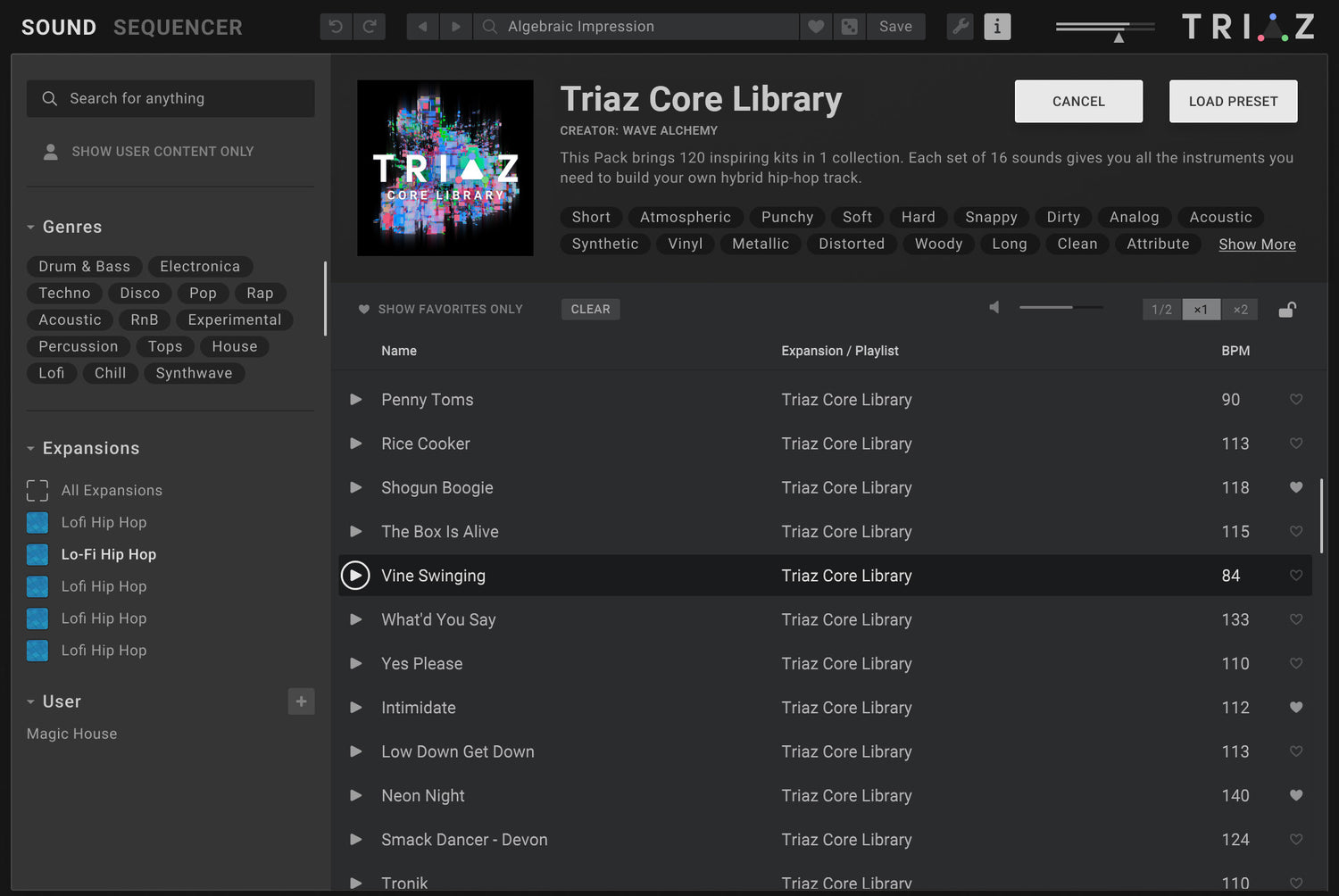 Jokainen esiasetus sisältää kuratoidun kuvion, miksattavaksi valmiin äänen suunnittelun ja hienosäädetyt efektit. Olitpa sitten tuottamassa trapia, technoa, poppia, drillia, ambientia tai kokeellista — Triaz antaa sinulle välittömän pääsyn genreä määrittäviin ja genreä rikkoviin rumpuihin.