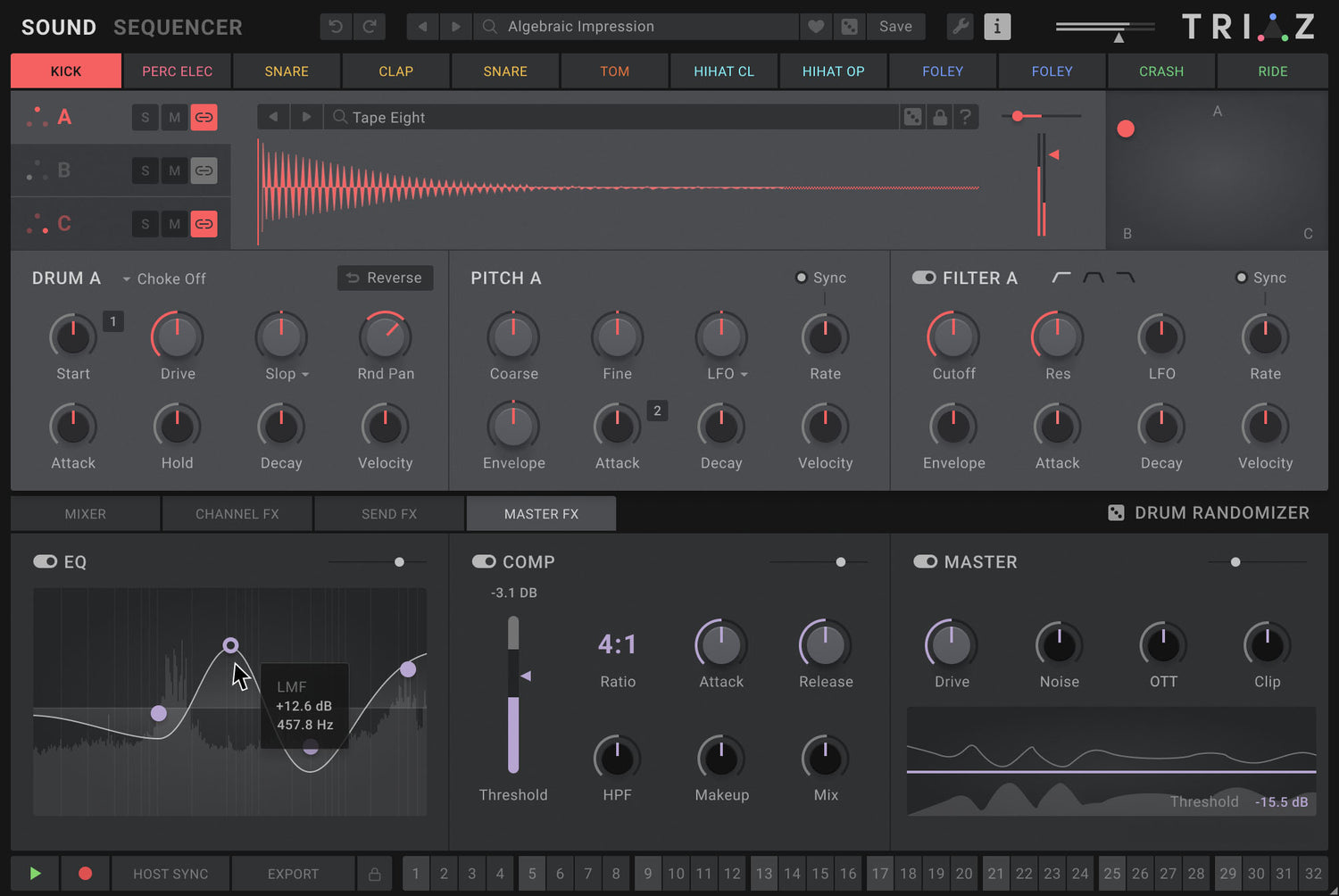 Älykkään suunnittelun, luovan vapauden ja salamannopean työnkulun ansiosta Triaz ei ole vain rumpu plugin — se on uusi luova kumppanisi.