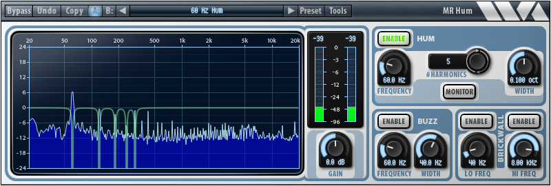 Yhdistämällä humin poistamisen, surinan poistamisen, brickwall-suodattamisen ja spektrianalyysin yhdeksi helppokäyttöiseksi plug-iniksi, MR Hum on täydellinen työkalu äänitysten puhdistamiseen kaikentyyppisistä humista tai ikävistä surinoista.